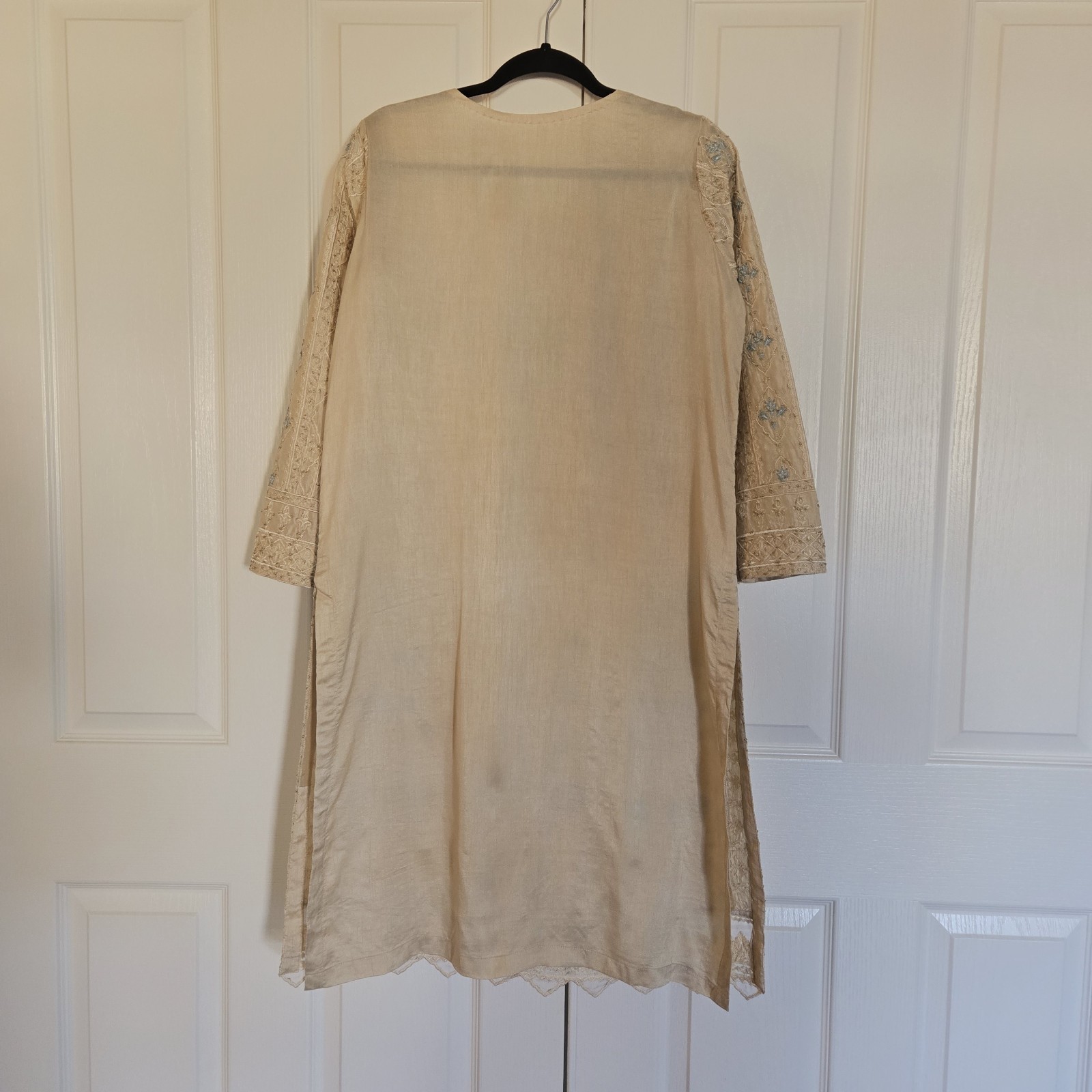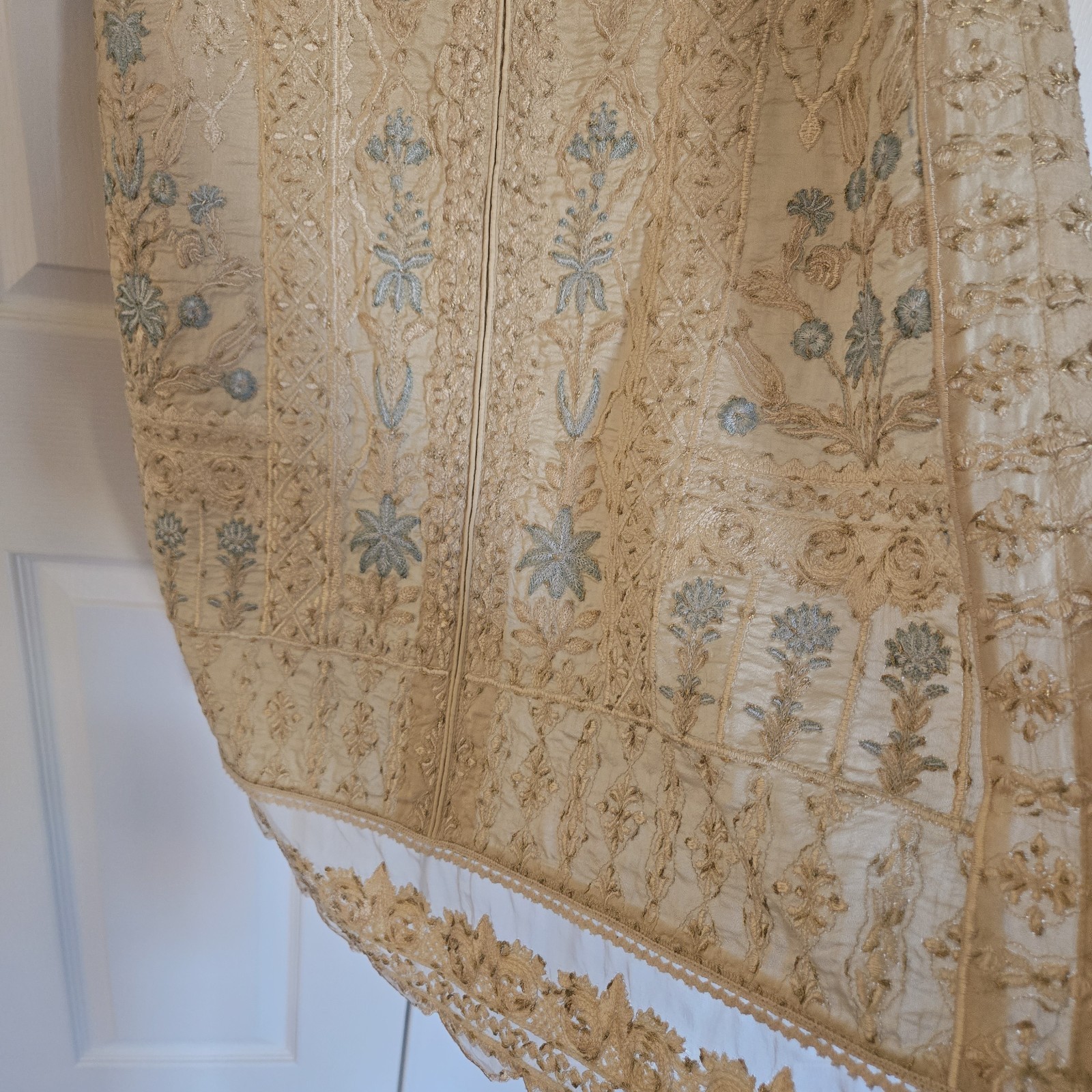 Embroidered Salwar Kameez Dupatta Long Scarf Beige Gold Organza Party Wear Dress