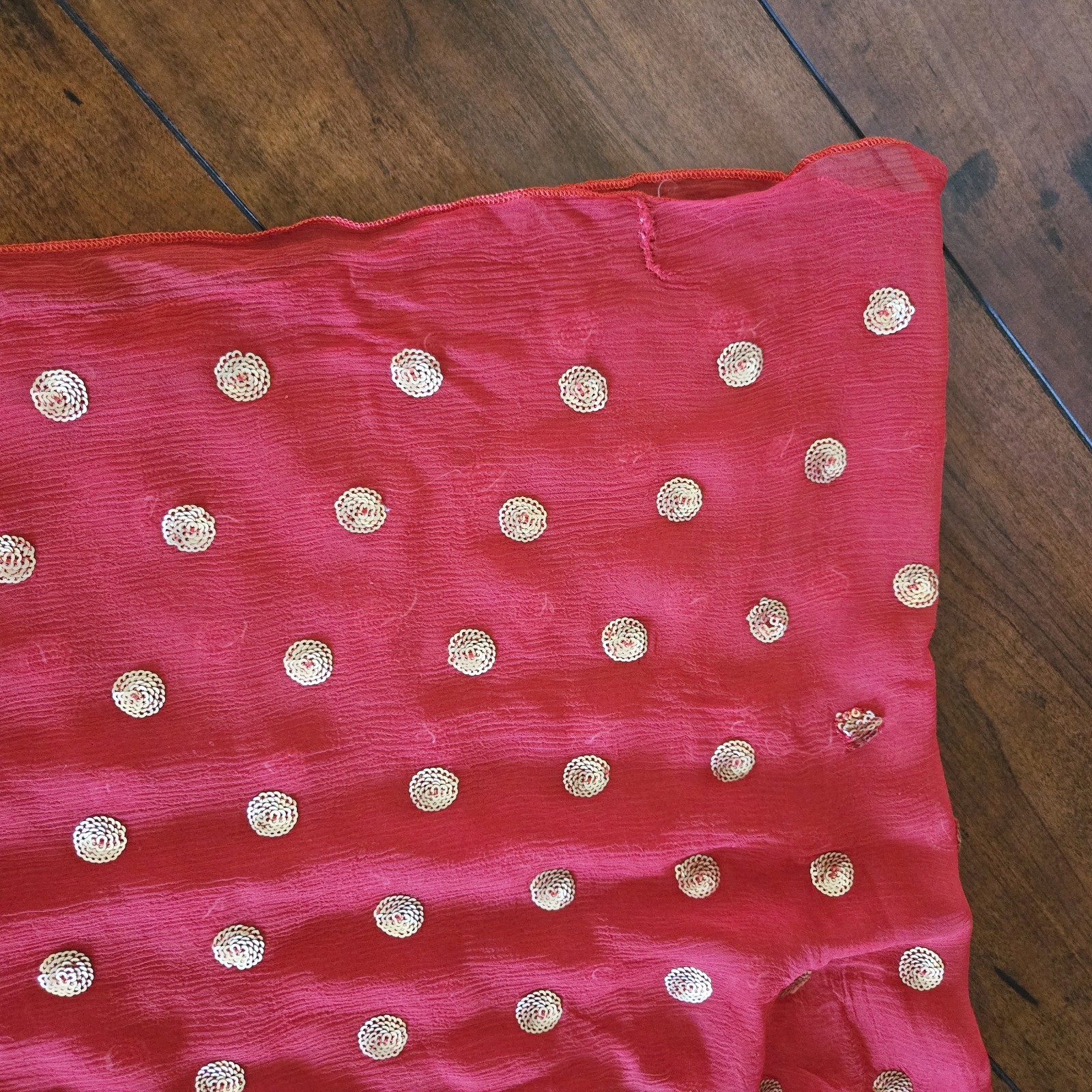 Embroidered Salwar Kameez Dupatta Long Scarf Red Gold Chiffon Party Wear Dress