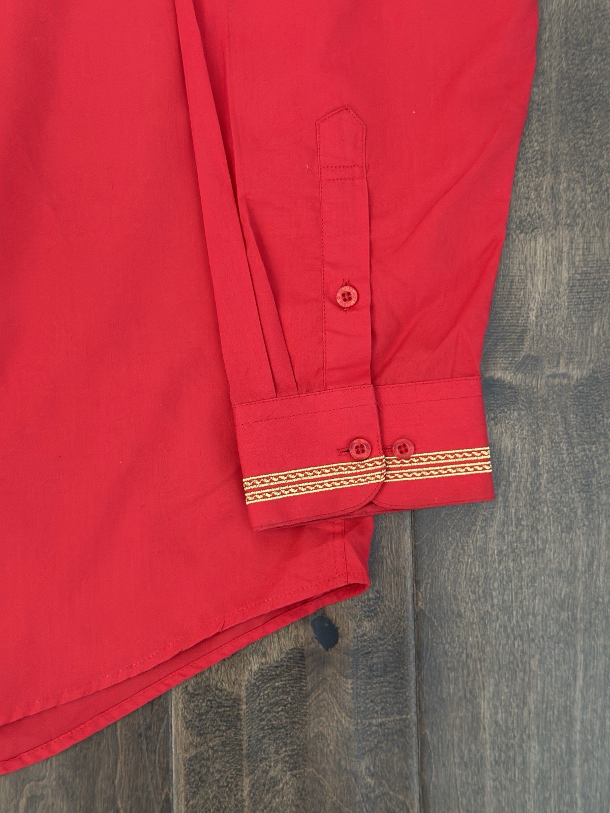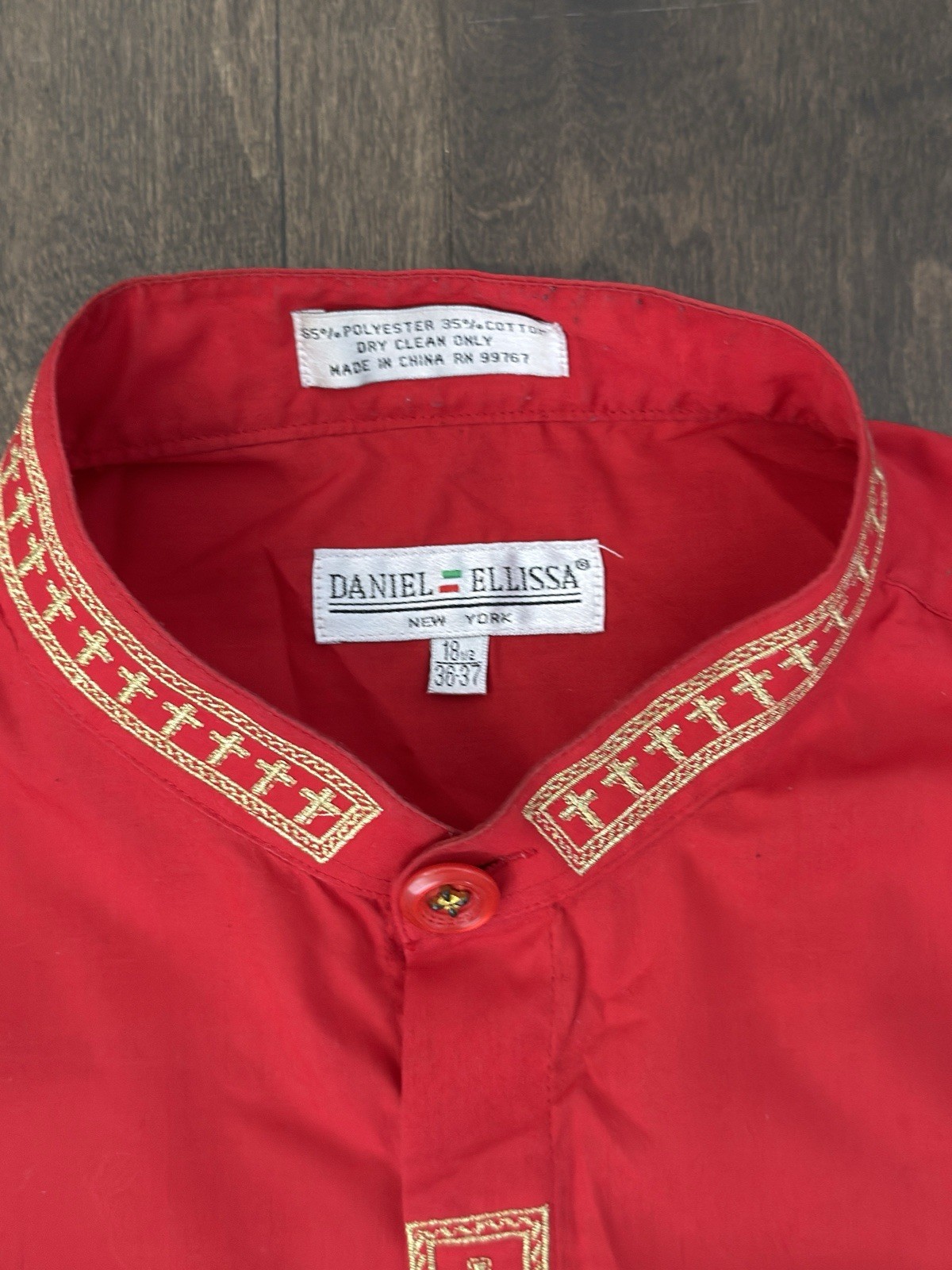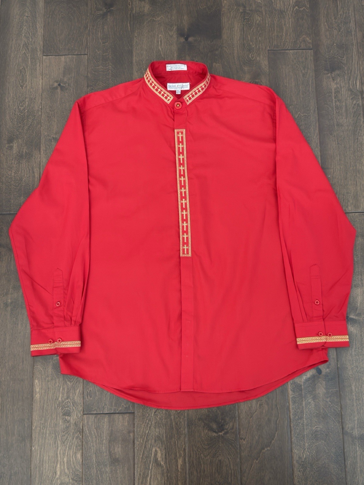 как выглядит Daniel Ellissa Mens Red Clergy Shirt Gold Cross Embroidery Convertible Cuffs фото