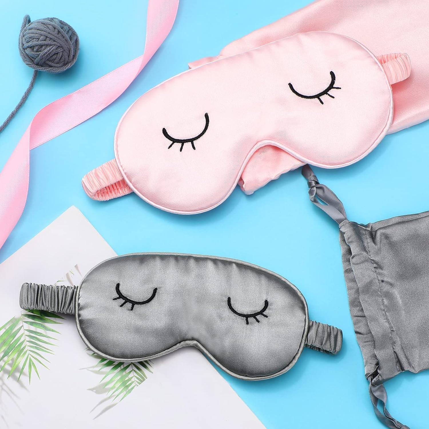2 Pice Cute Sleep Eye Mask for Kids Silk,Lightweight,Adjustable with Bag 3-12Yrs