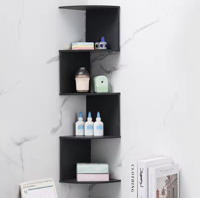 как выглядит White 4-Shelf Wall Mounted Corner Shelf, Contemporary Solid Wood Matte Finish фото