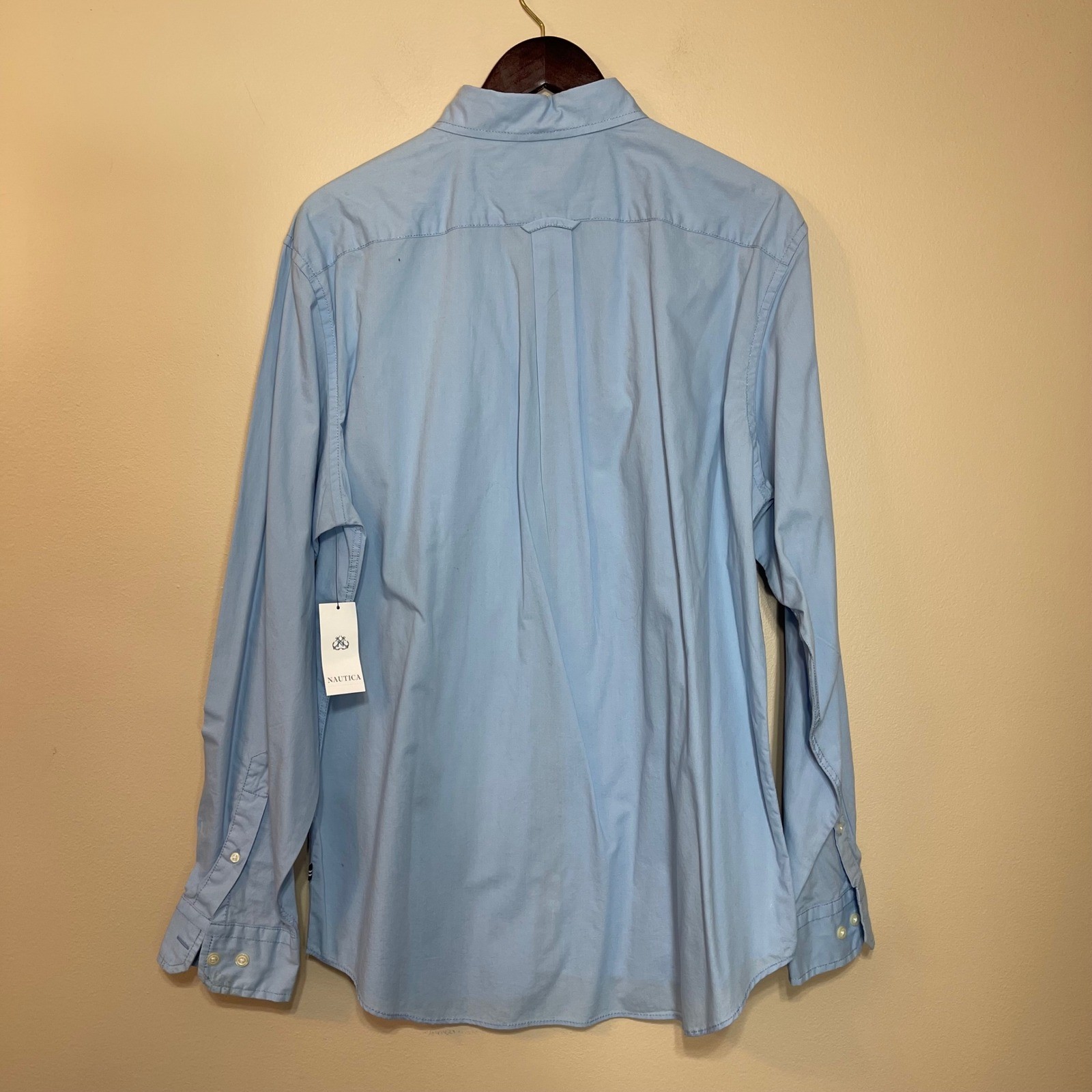 как выглядит NWT Nautica Mens Noon Blue Long Sleeve Button Down Shirt Solid Cotton L фото