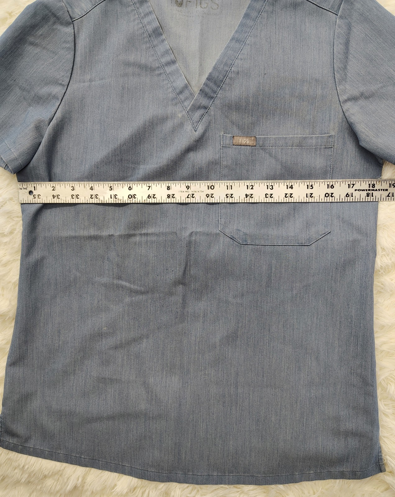 FIGS Catarina Scrub Top Women s Size XS Heather Denim V-Neck One Pocket Uniform