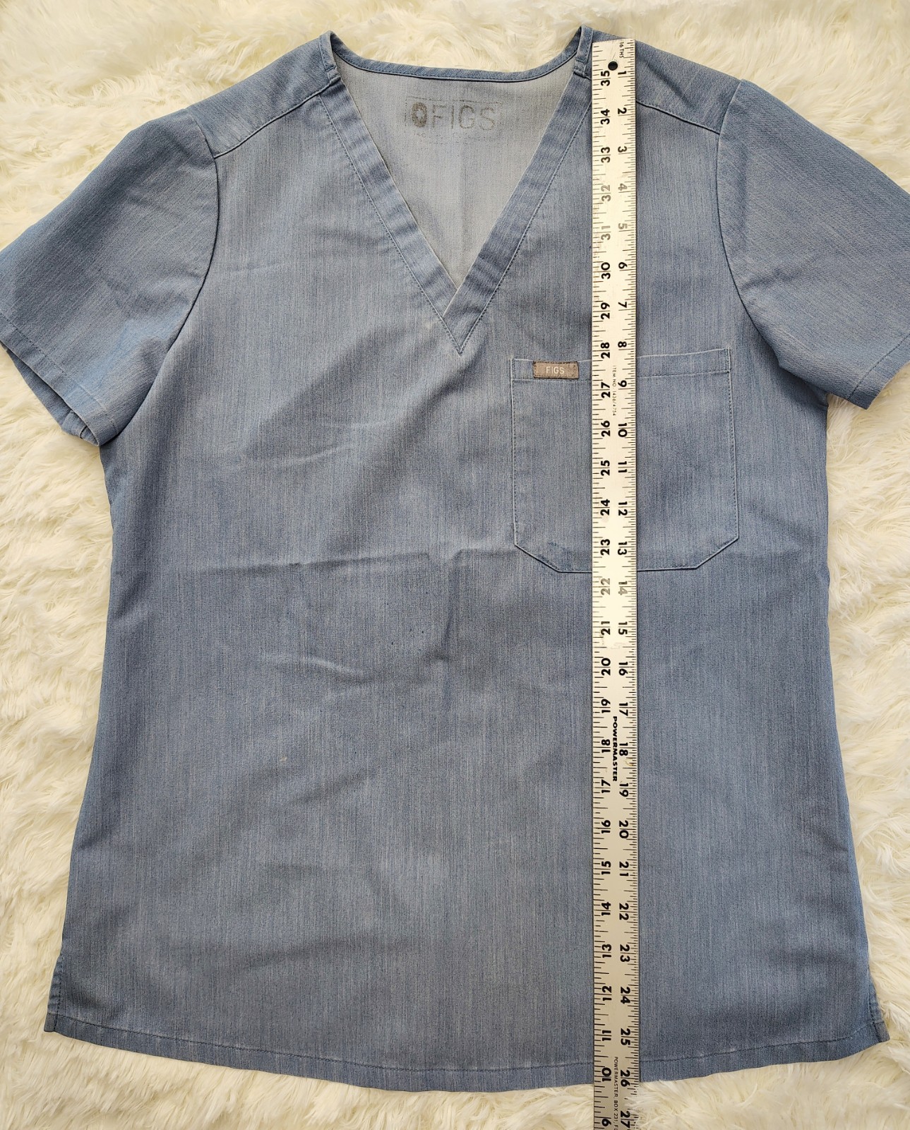как выглядит FIGS Catarina Scrub Top Women s Size XS Heather Denim V-Neck One Pocket Uniform фото