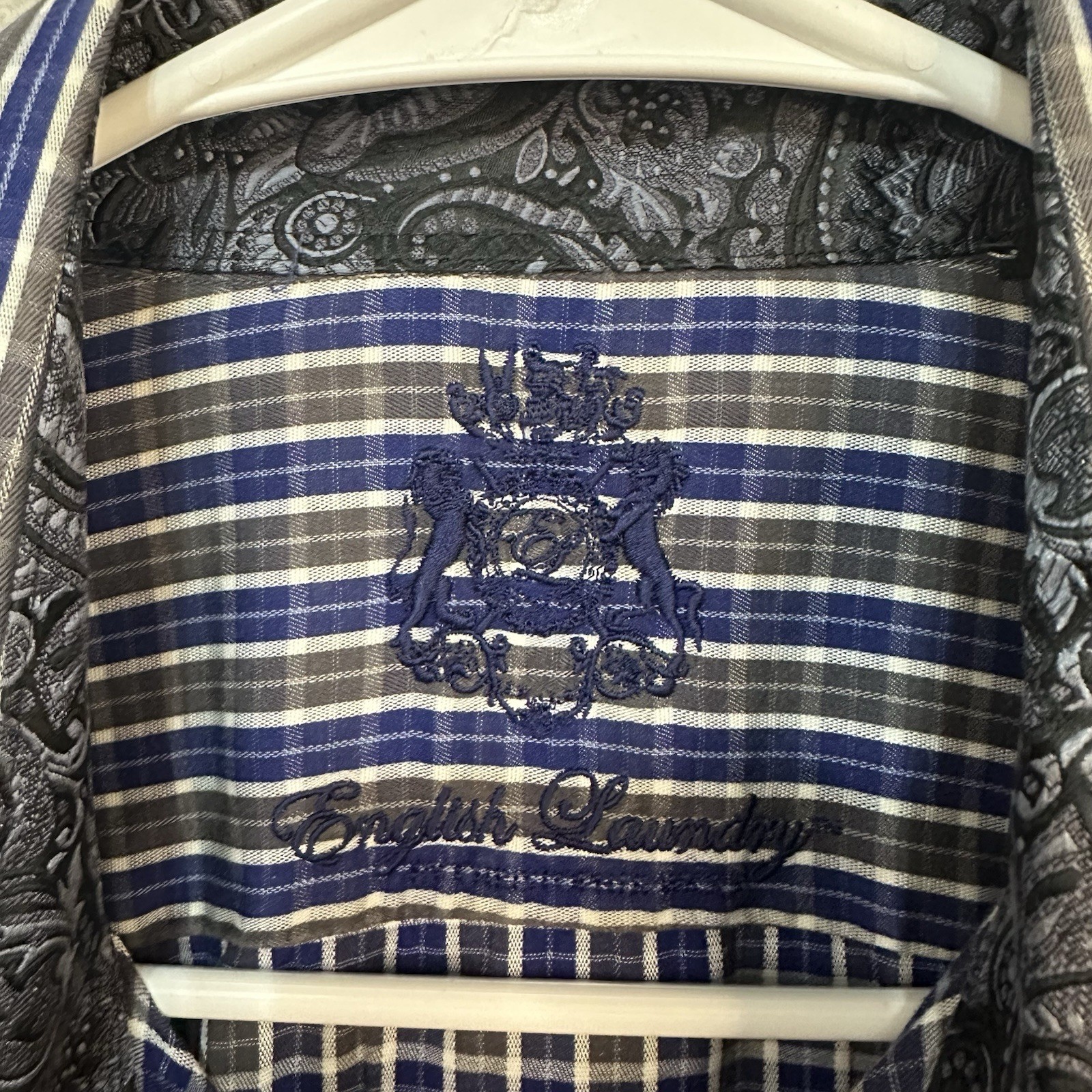 English Laundry Men s Long Sleeve Blue Checked 16 34/35 Flip Cuff Handsome
