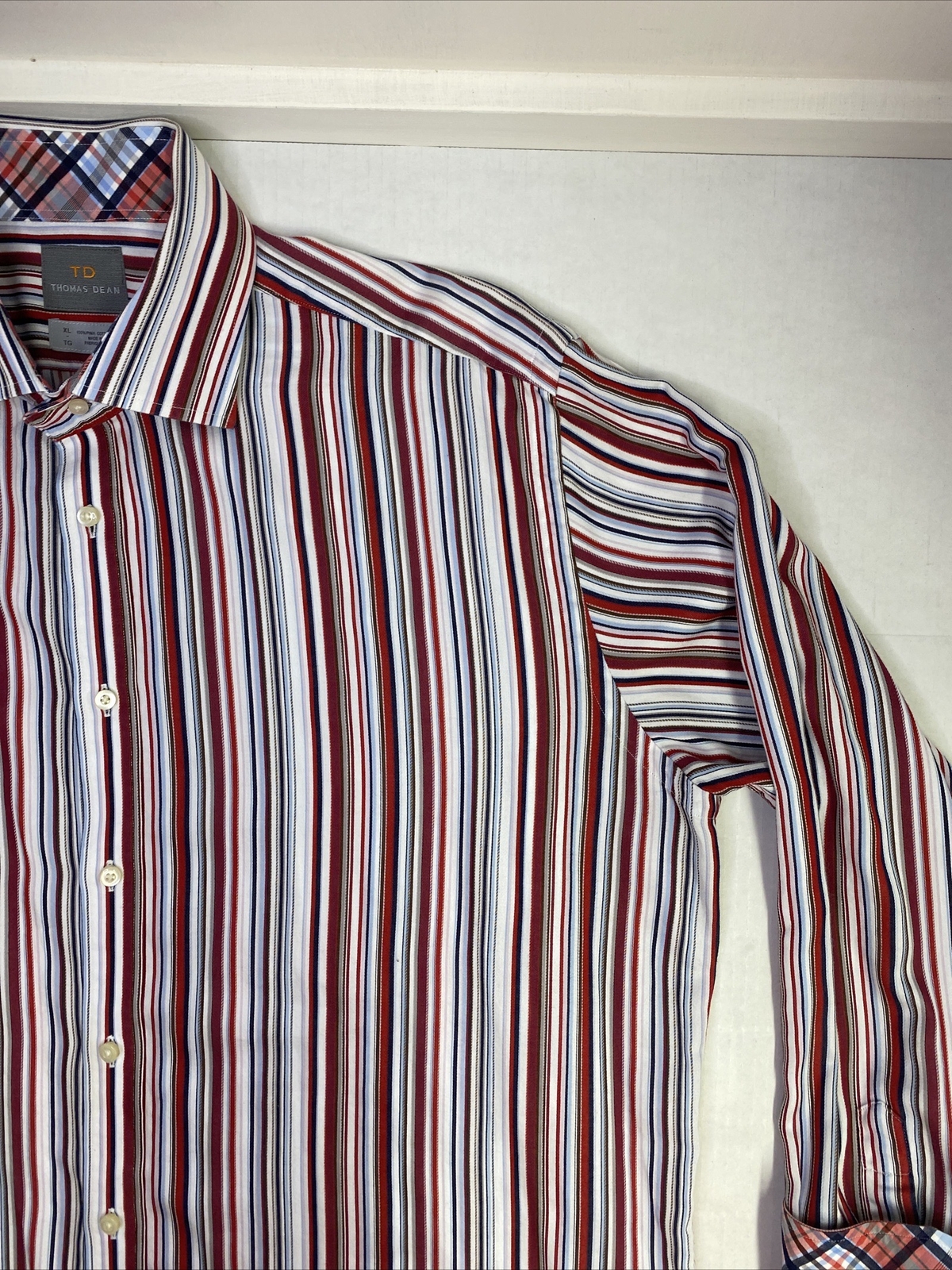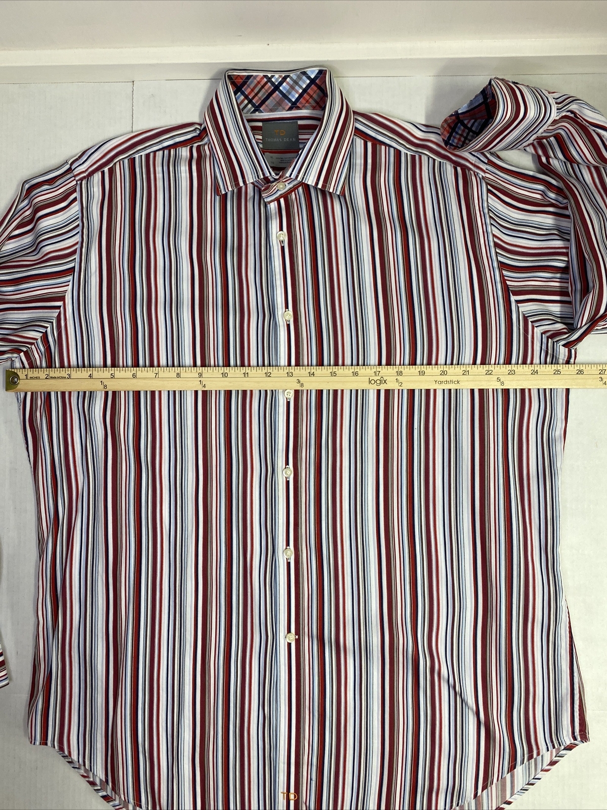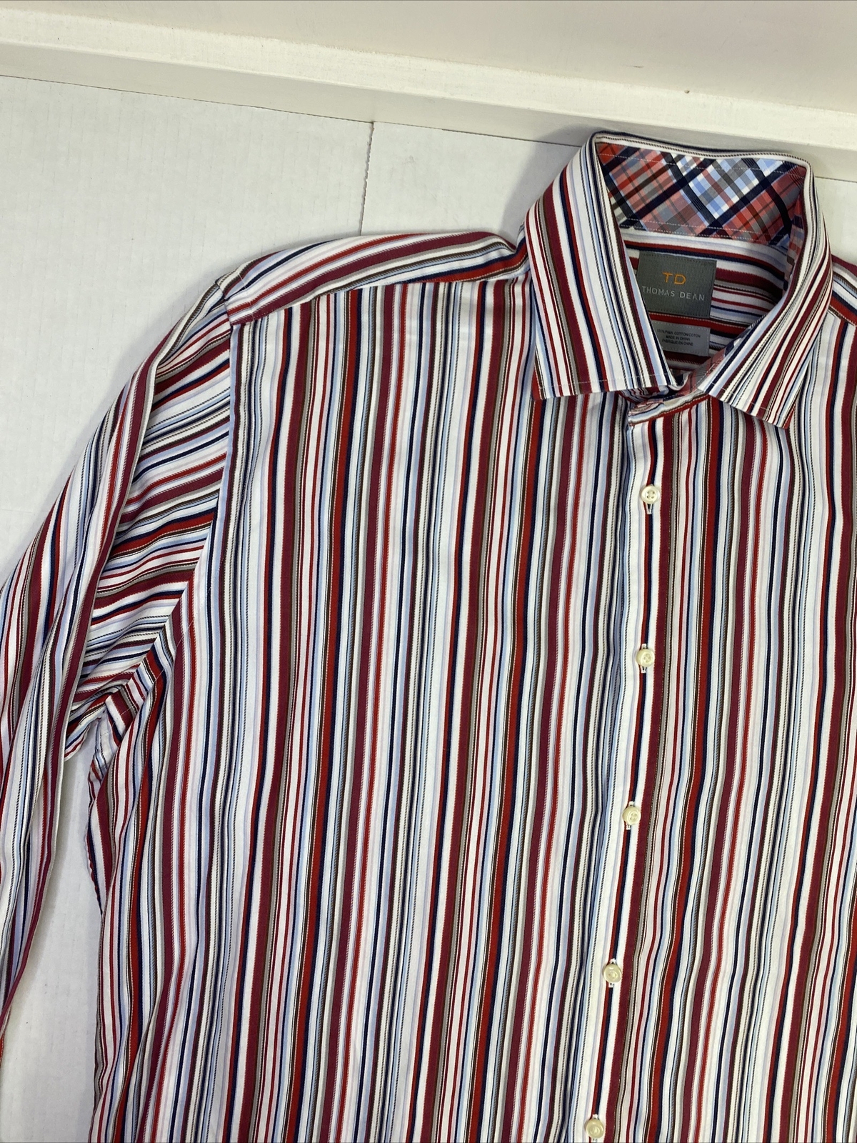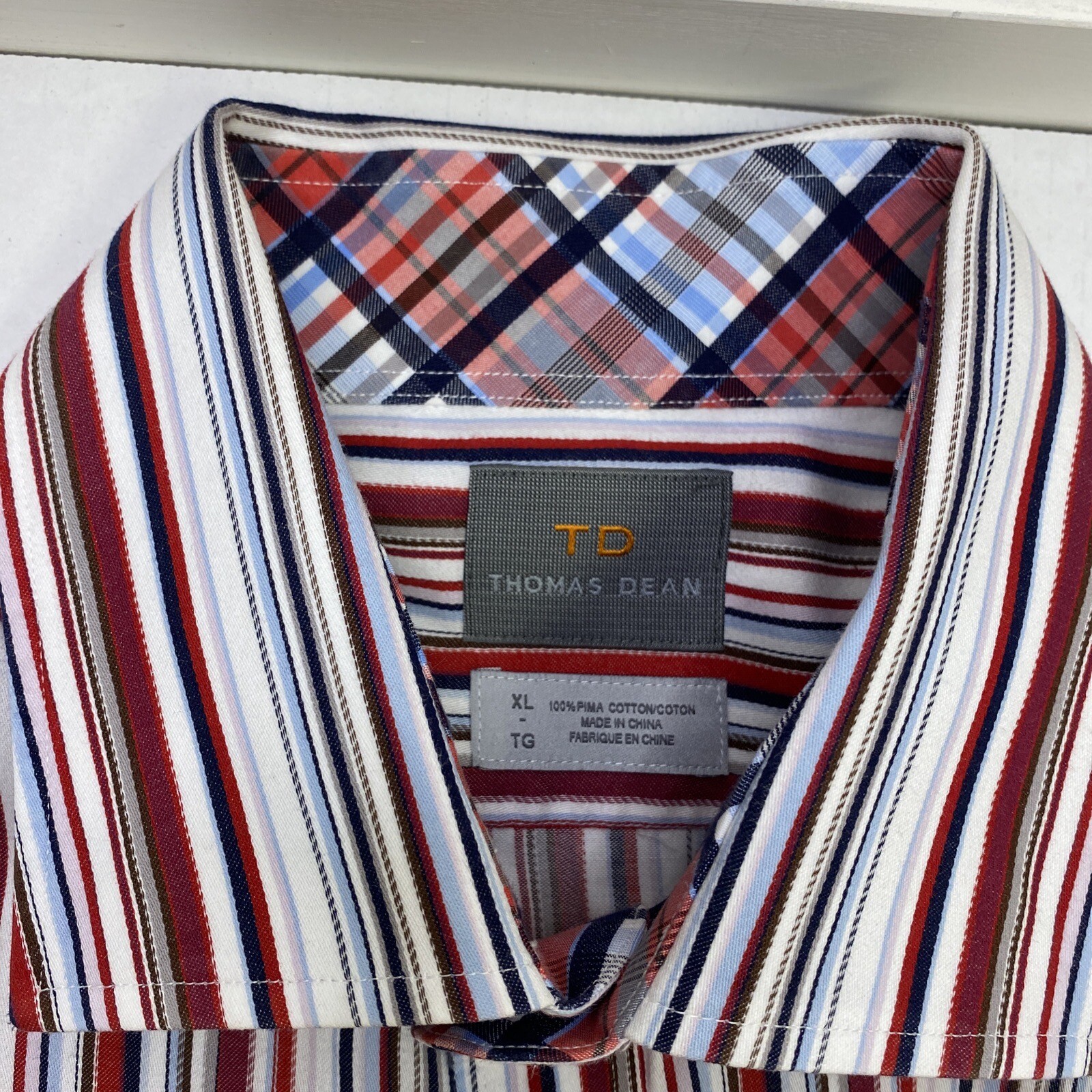 Thomas Dean Button Up Shirt Men's Size XL Multi Striped Long Sleeve Soft Pima