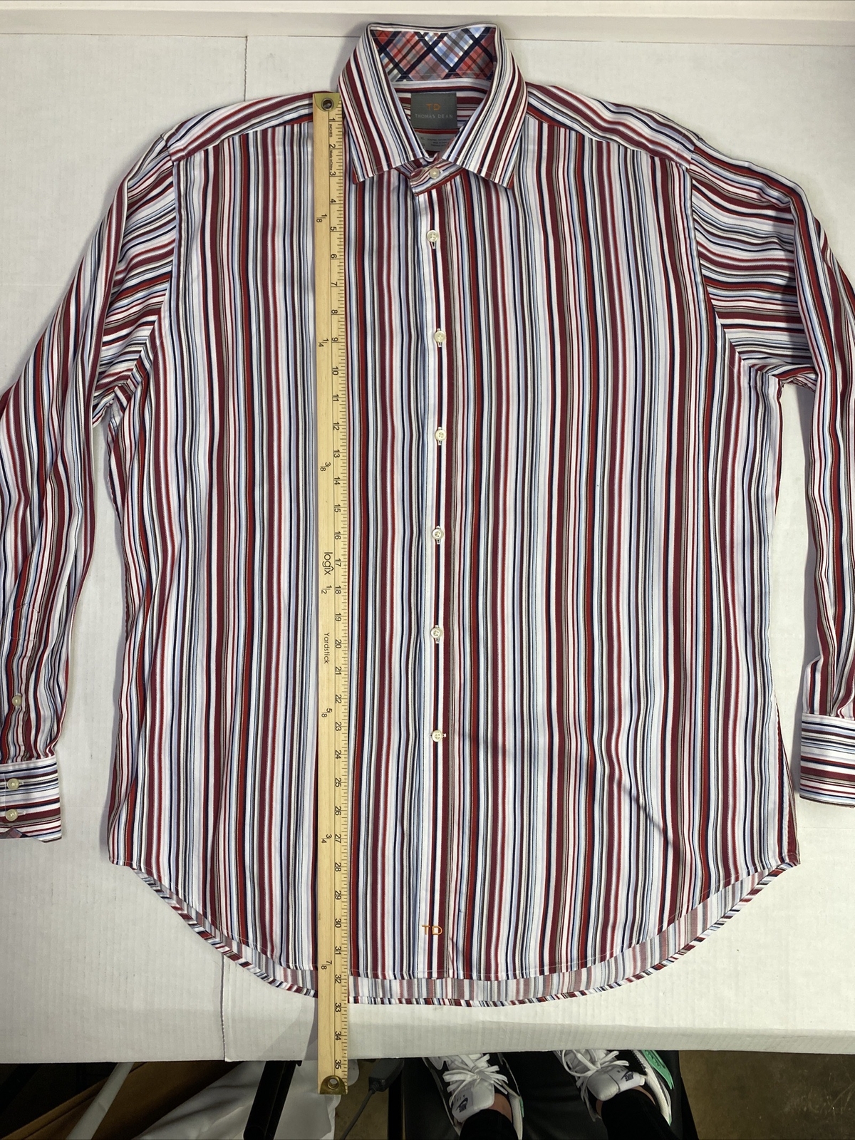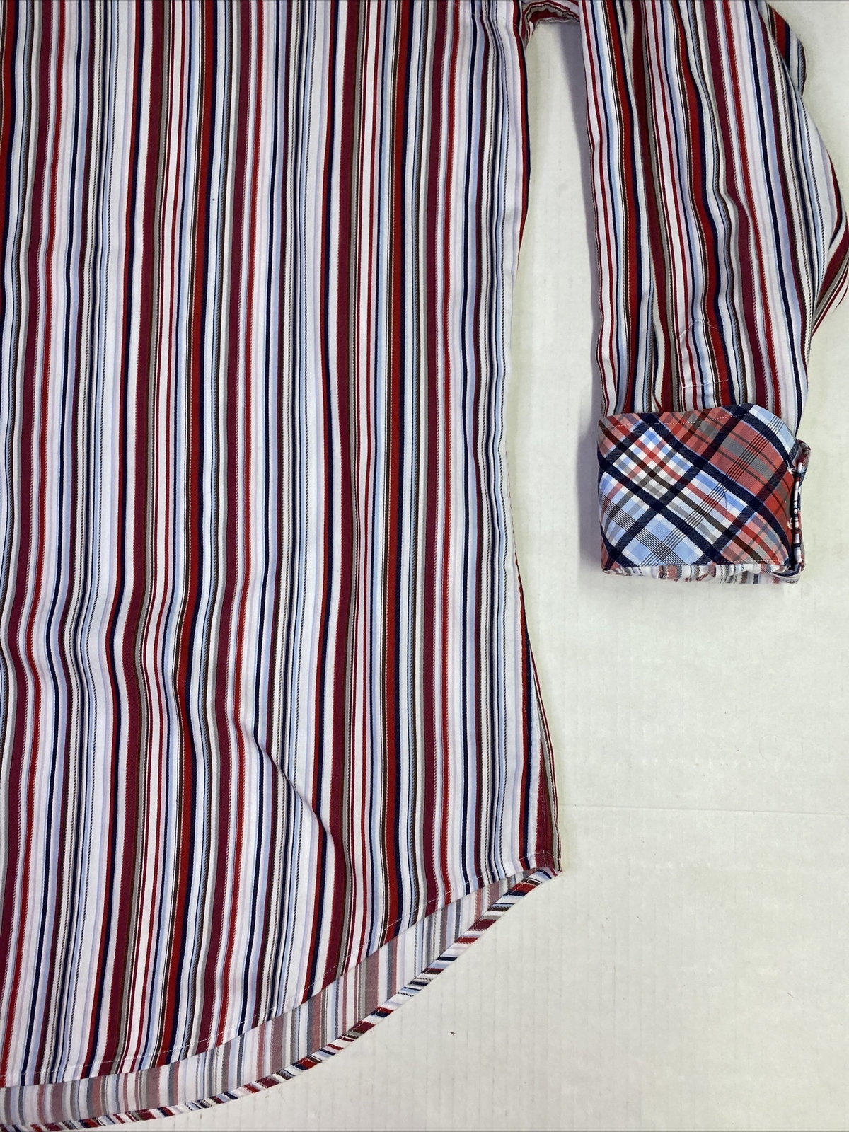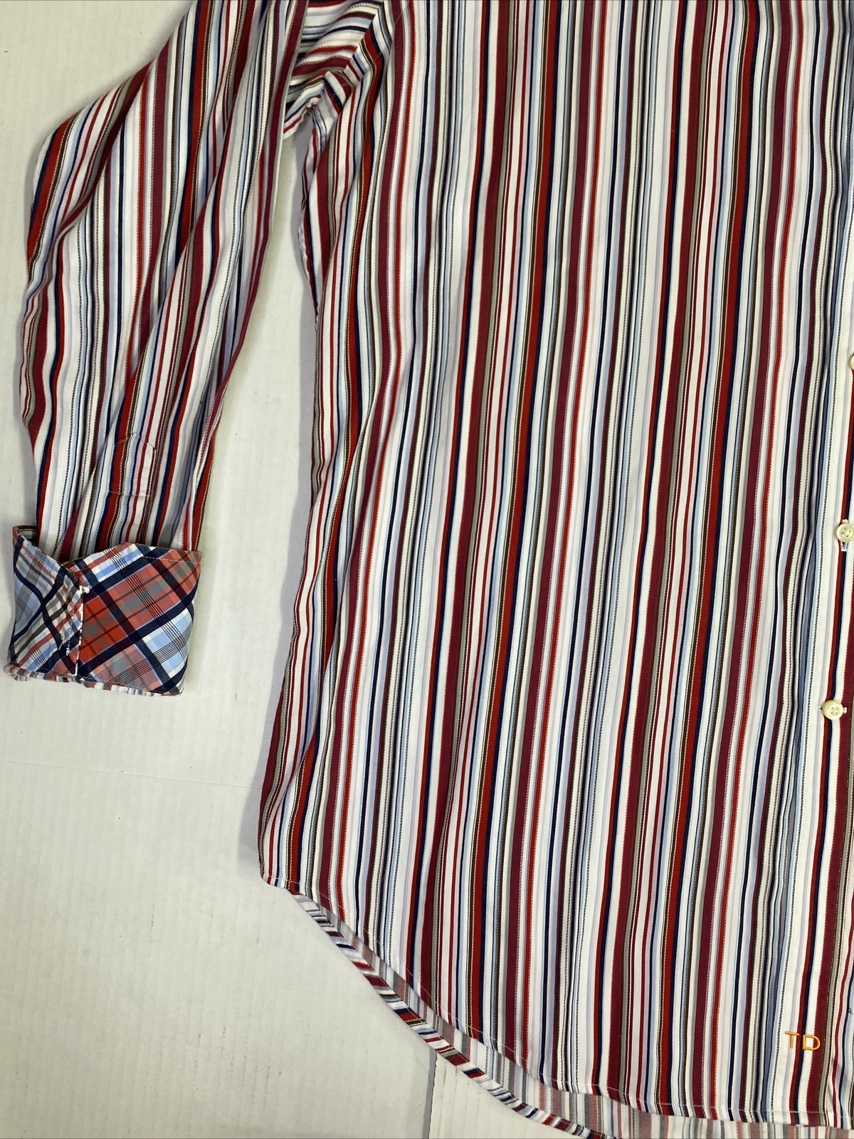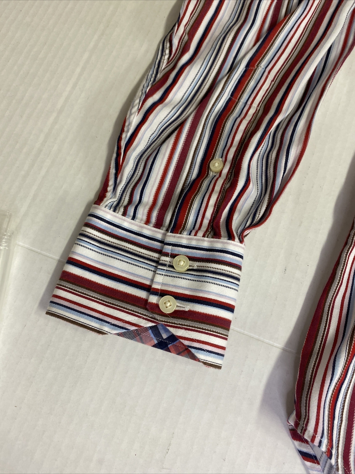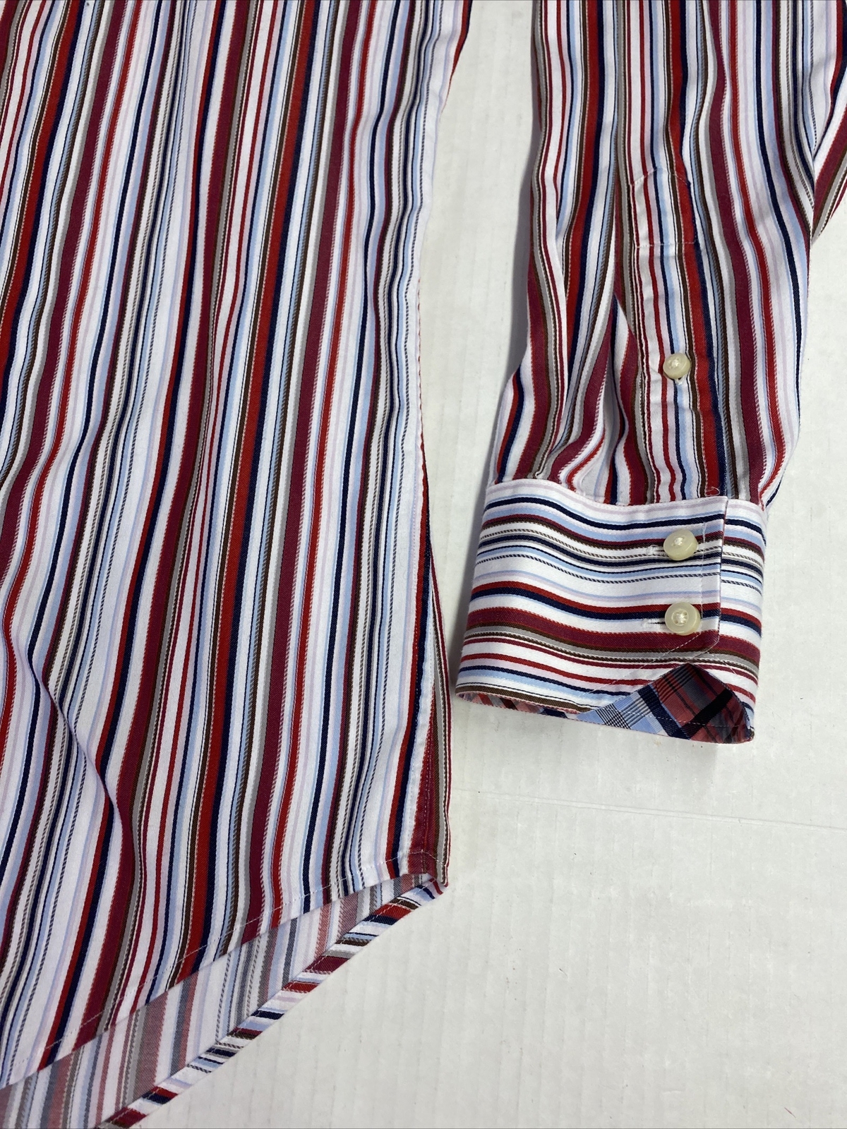 Thomas Dean Button Up Shirt Men's Size XL Multi Striped Long Sleeve Soft Pima