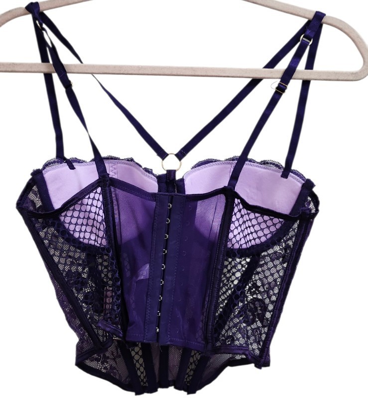 как выглядит Adore Me Purple Lace Corset Bustier 36B Underwire Sheer Mesh Lingerie Top NWT фото