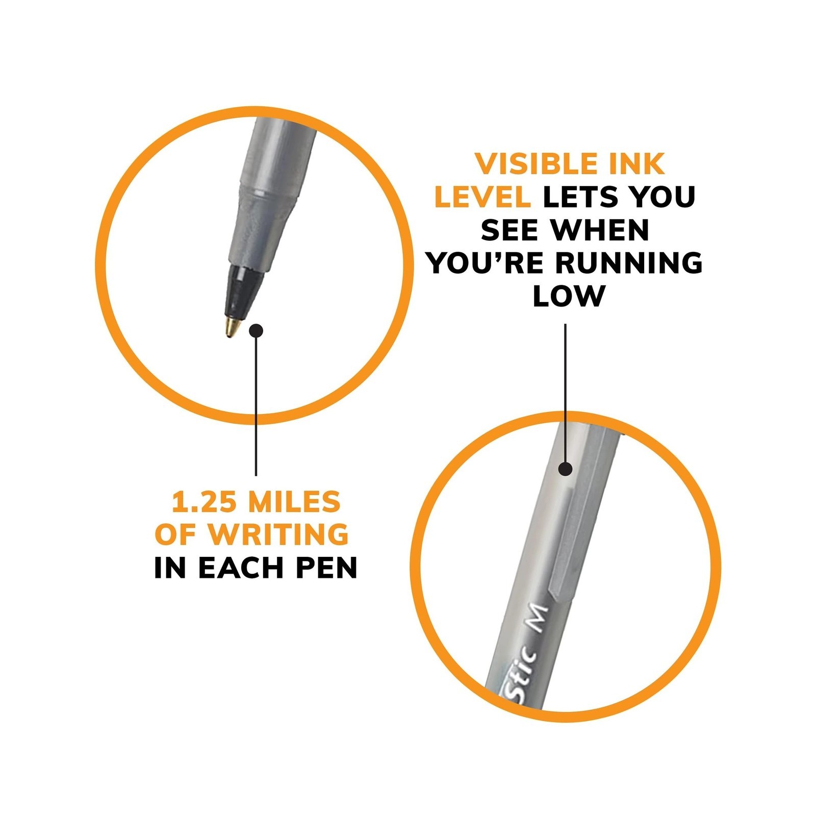 BIC Round Stic Xtra Life Black Ballpoint Pens, Medium Point 1.0mm , 12-Count...