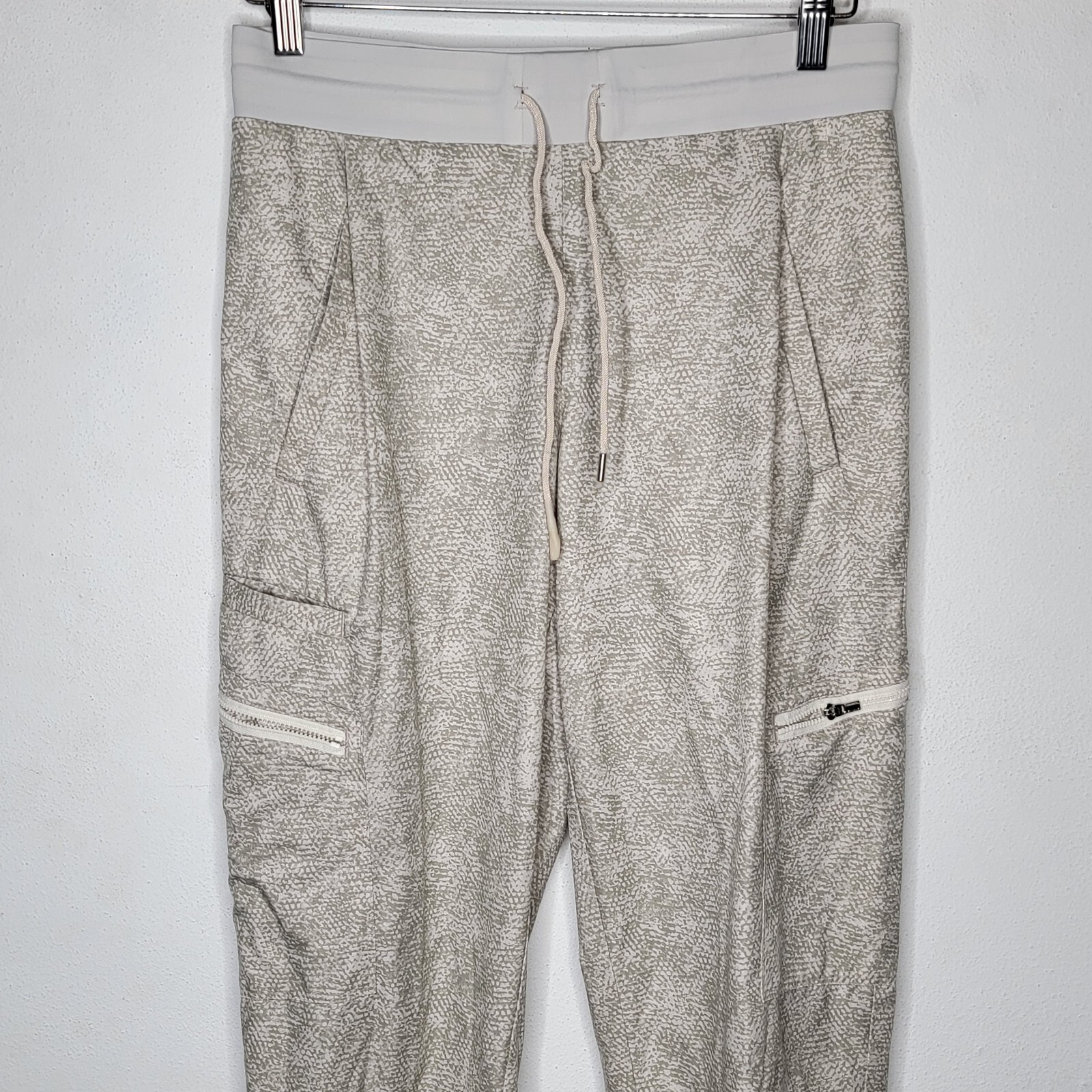 Athleta Venture Printed Pant Size 4 Cream / Gray Zipper Pockets Jogger