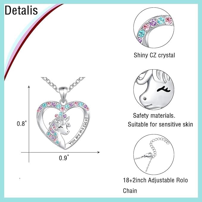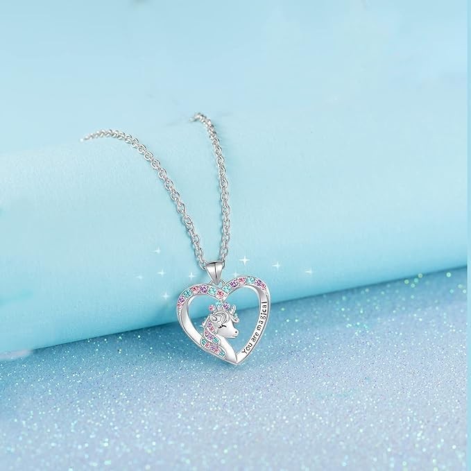 Magical Unicorn Jewelry for Girls - Crystal Love Heart Pendant Necklace