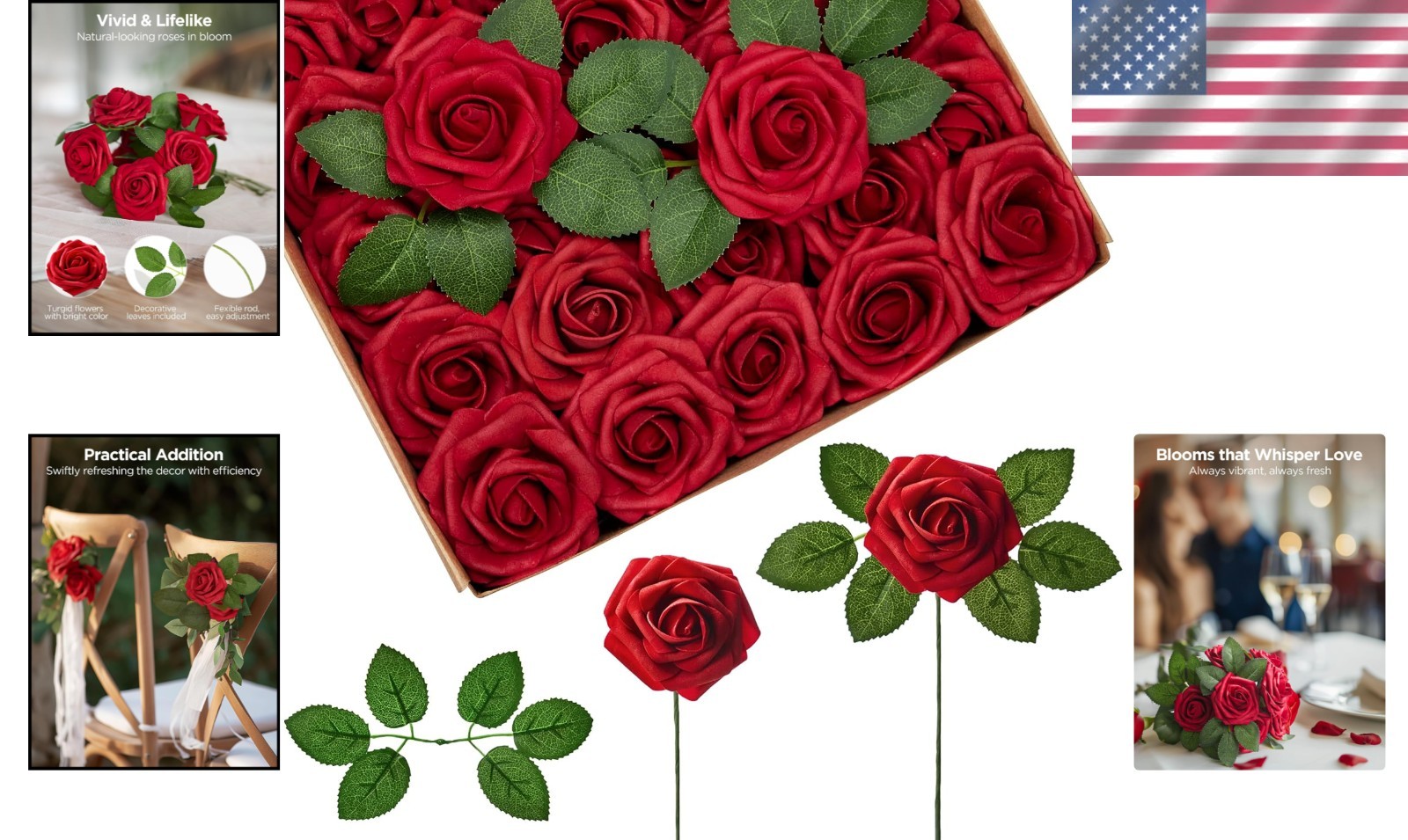Versatile 25 Count Dark Red Foam Roses - Stunning D cor for Weddings Christmas
