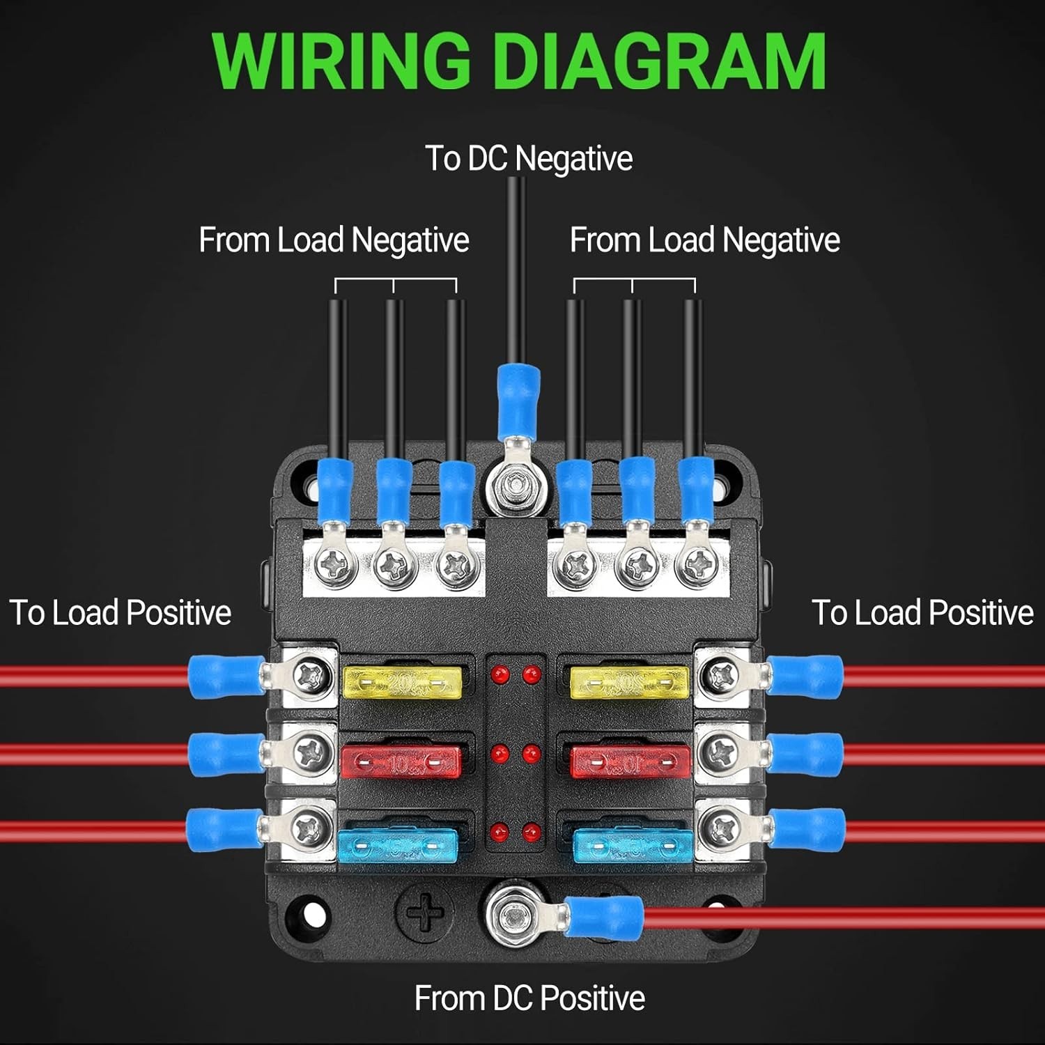 12V 6 Circuit Fuse Block Box Kit with LED Indicator Waterproof Marine RV Car.