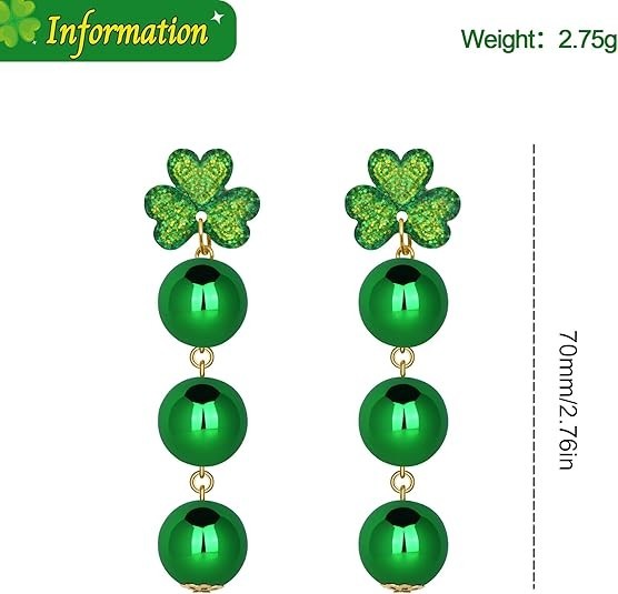 St Patricks Day Earrings for Women Irish Shamrock Drop Dangle Earrings Lucky Gre