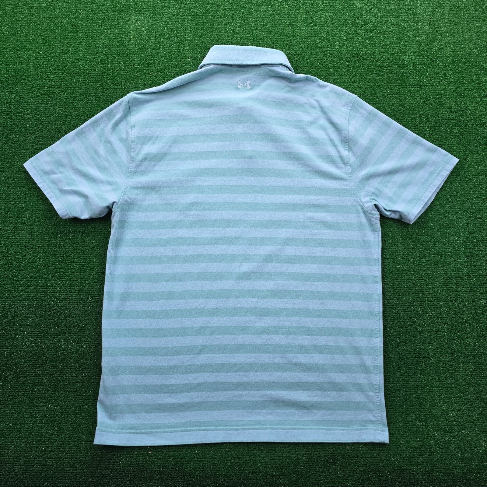 Under Armour Polo Shirt Mens Large Teal Striped Short Sleeve Performance Golf