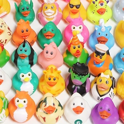 100 Pcs Mini Rubber Ducks Assorted - Bath Toys, Pool Party Favors, Kids Gifts