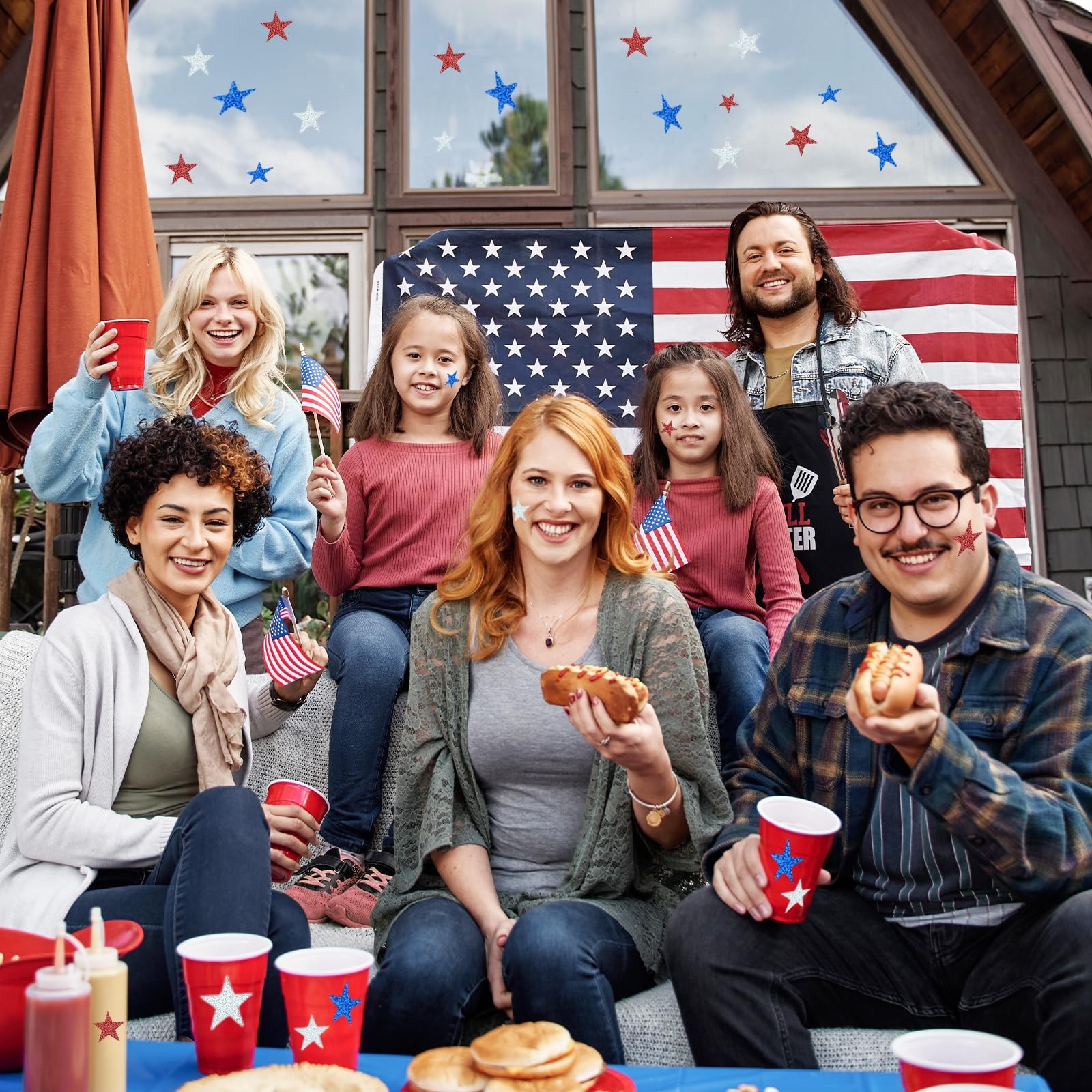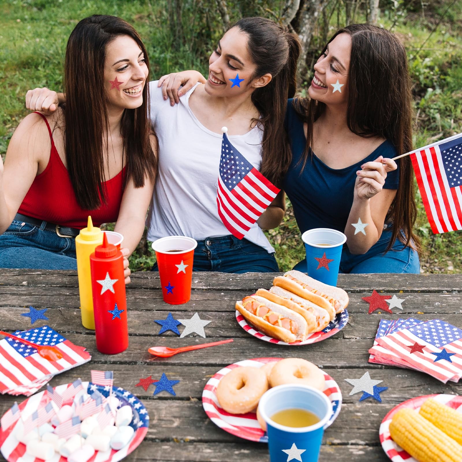 200 PCS Red White Blue Glitter Foam Star Stickers 3 Sizes