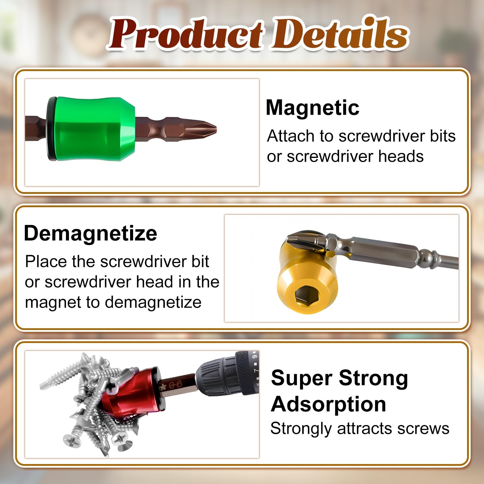 3PCS Strong Magnetic Screw Ring, Upgrade Screwdriver Head Ring 3pcs
