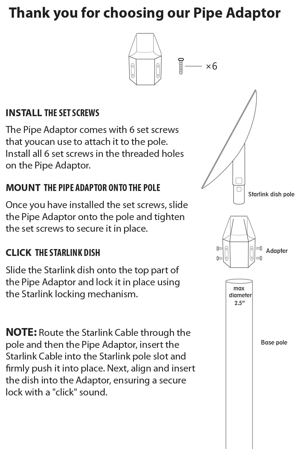 Starlink Pipe Adapter, pole mount, Available for 2.5 inches