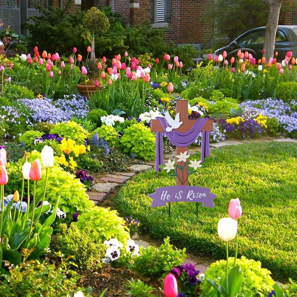 Easter Decorations Outdoor, He is Risen Cross Decorative Garden Stakes with Lili
