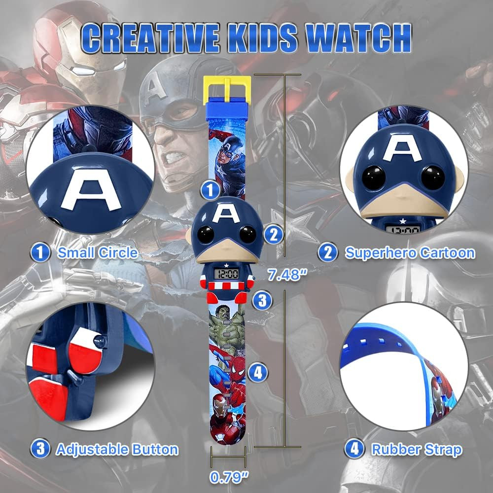 Superhero Kids Watch, Kids Digital Watch for Boys Girls, Easy Read Cute Cartoon