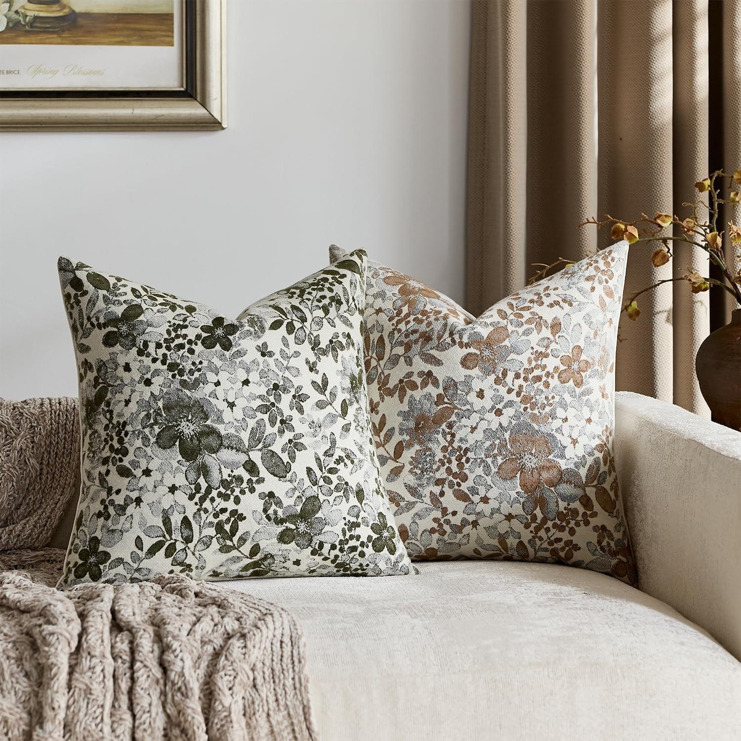 Vintage Floral Throw Pillow Covers 18X18 Pack of 2 Country Farmhouse Accents Che