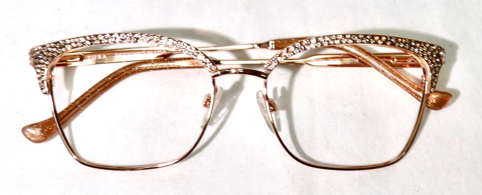 как выглядит Tura NEW TE274 Eyewear 53-16-140 Rose gold metal eyeglass frame with rhinestones фото