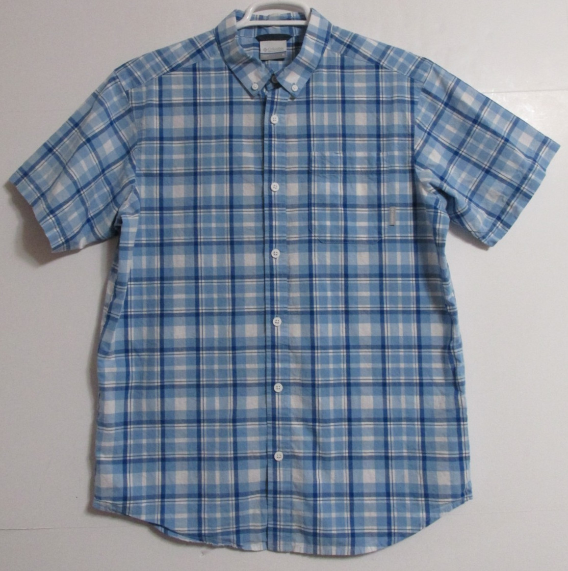 как выглядит Mens Columbia Short Sleeve Cotton Shirt Blue Plaid Size Medium фото
