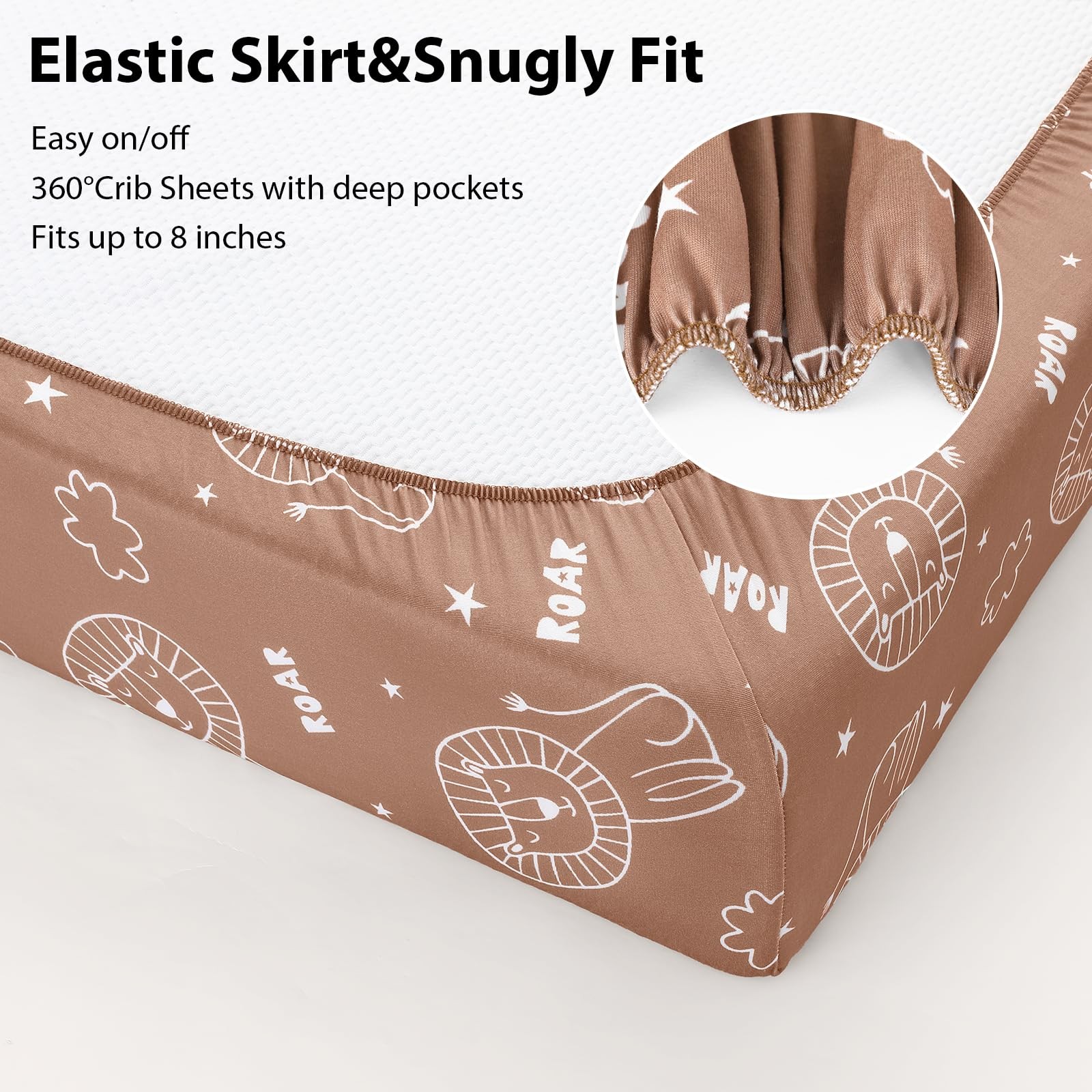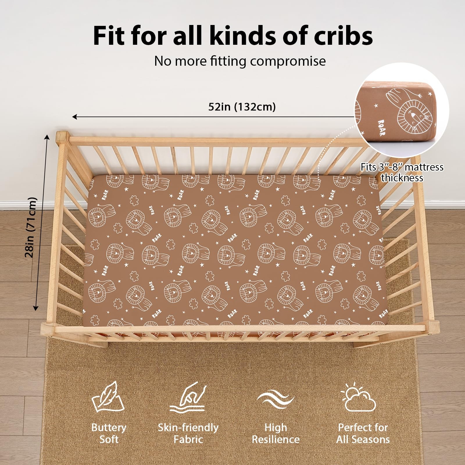Baby Crib Sheets Toddler 52x28x8 Inch 3 Pack Neutral Brown Lion FIEMOL Boys