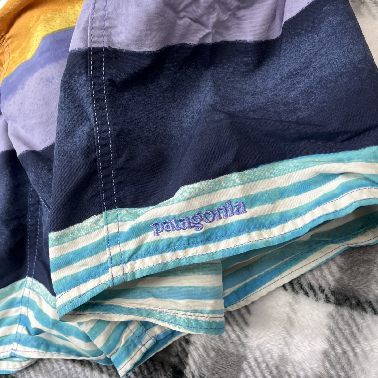 как выглядит Patagonia Hydropeak Volley Shorts Men 38" Blue Colorblock Swim 16" Stretch фото
