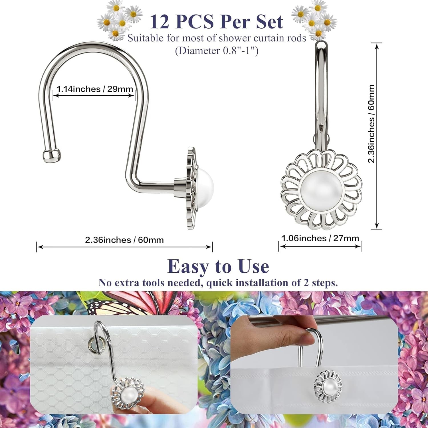 как выглядит Nickel Shower Curtain Hooks Rings, Decorative Shower Curtain Hangers, Heavy D... фото