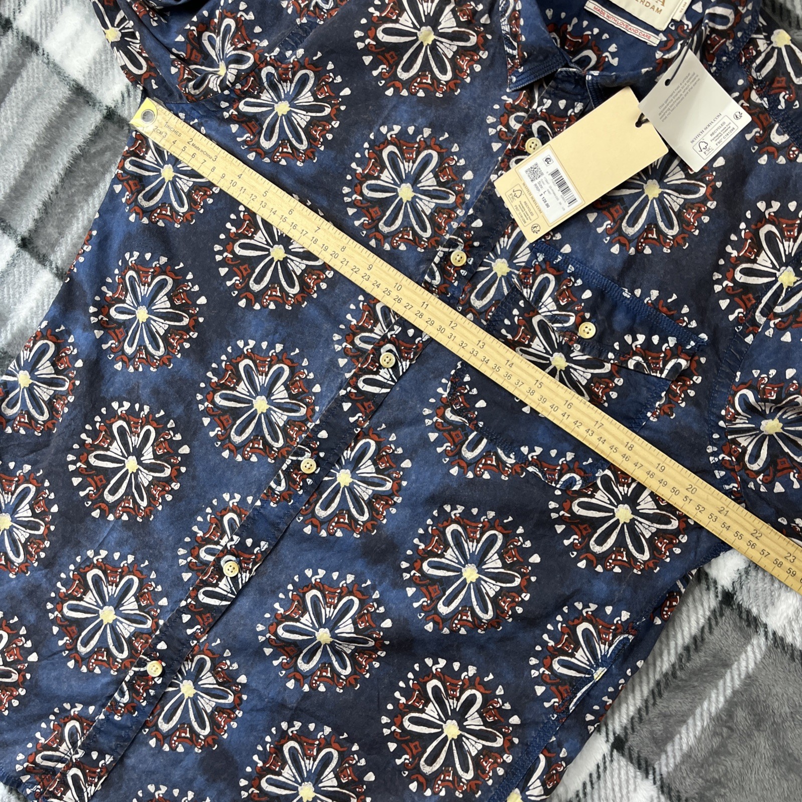 как выглядит Scotch Soda Amsterdam Shirt Mens L Blue Floral Print Long Slv Button 128 NWT фото