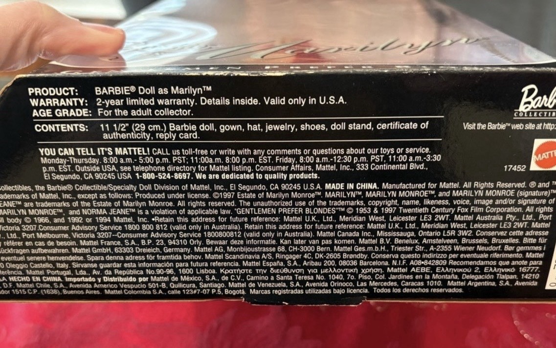 1997 Barbie as Marilyn Monroe Gentlemen Prefer Blondes Doll NRFB