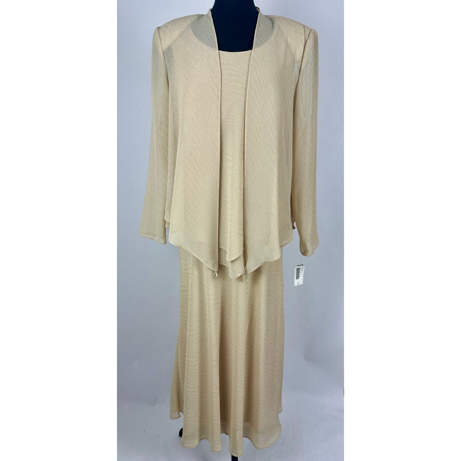 R M Richards Champagne Mother of the Bride Dress Jacket Set 14 Evening Gown