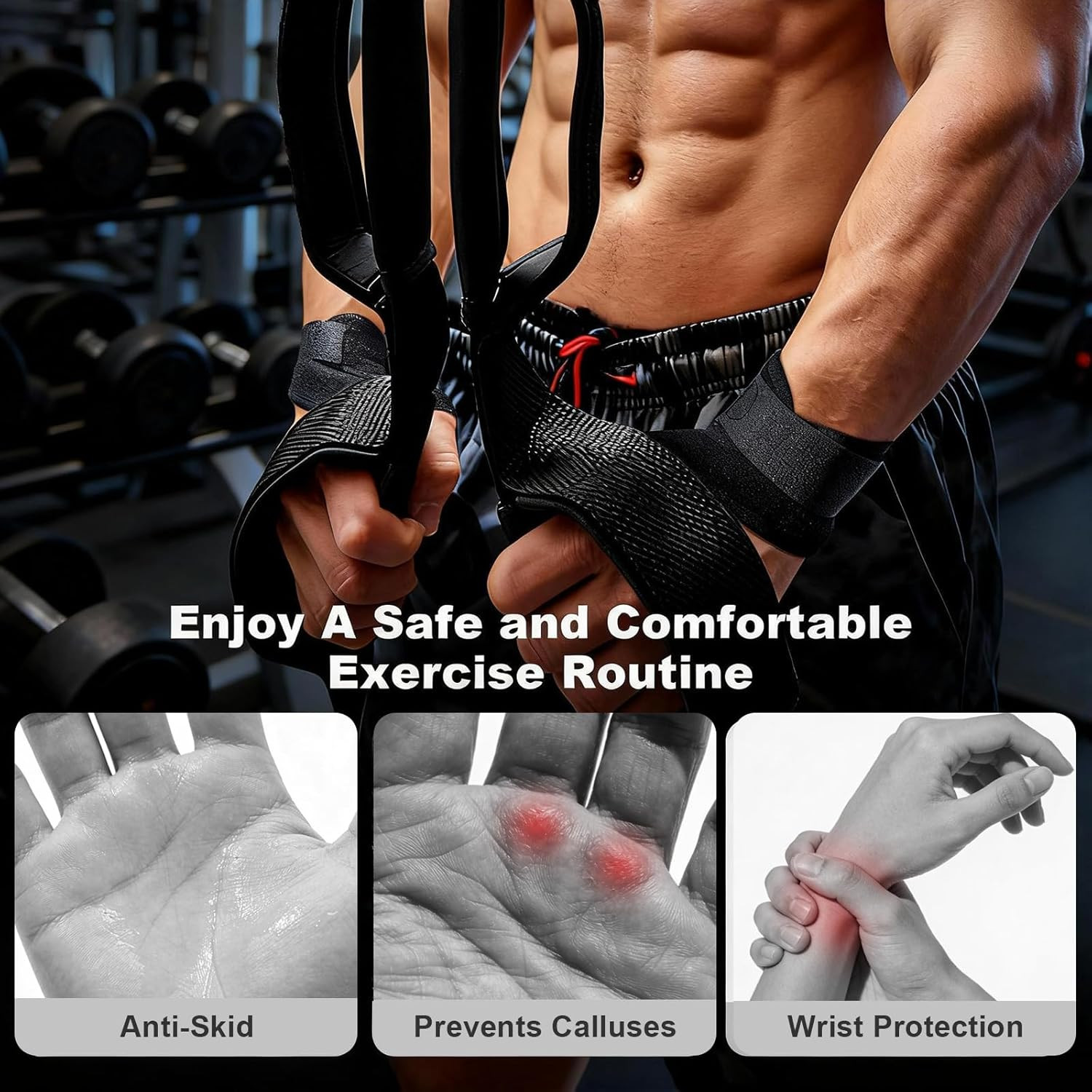 Tricep Rope Cable Attachment with 6 Anti-Slip Handles, Extra-Long Adjustable Pul