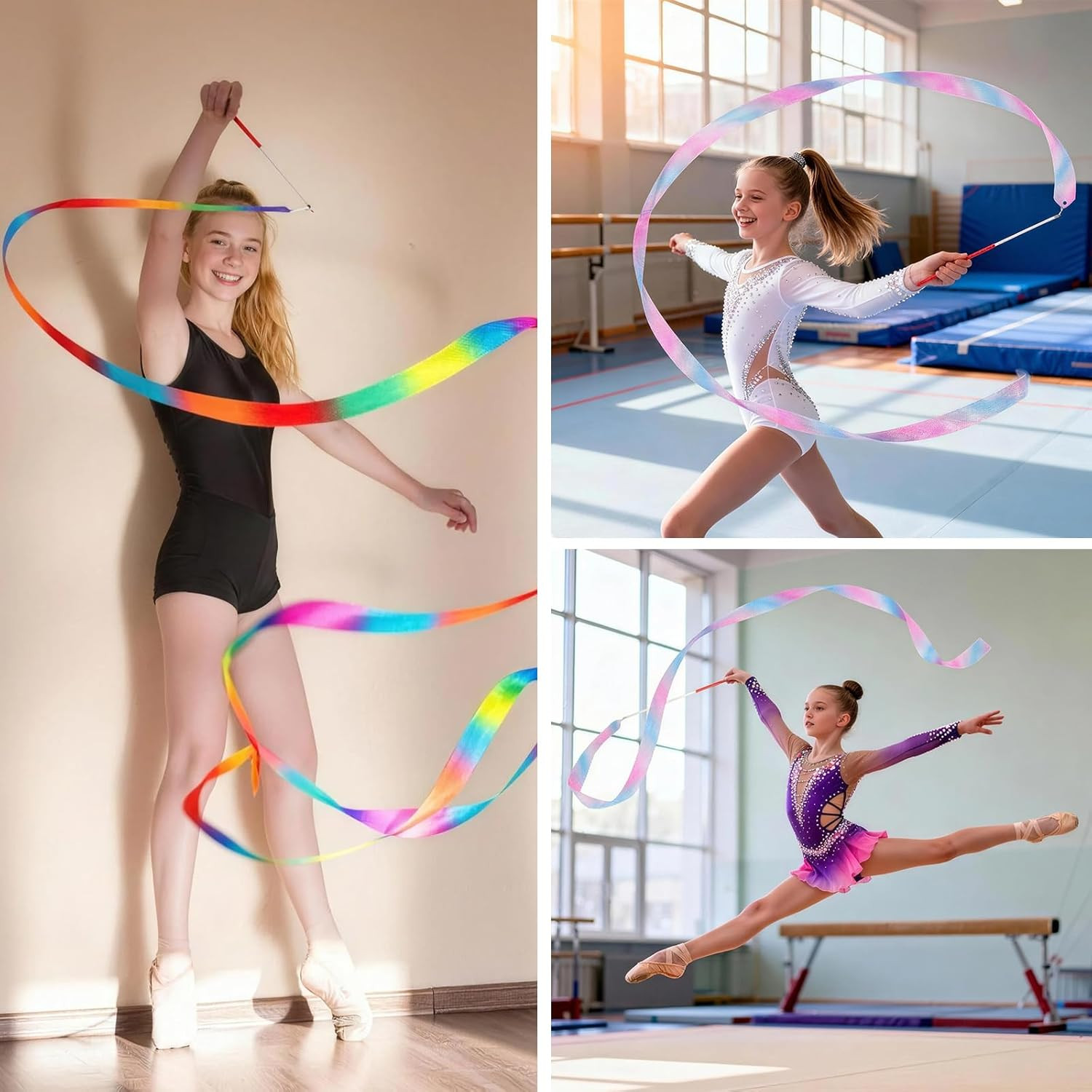 как выглядит 2 PCS Dance Ribbon Streamers 78.7 Inch, Sparkling Rhythmic Gymnastics Ribbon Dan фото