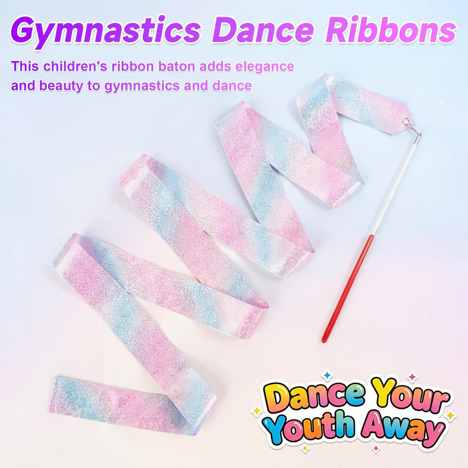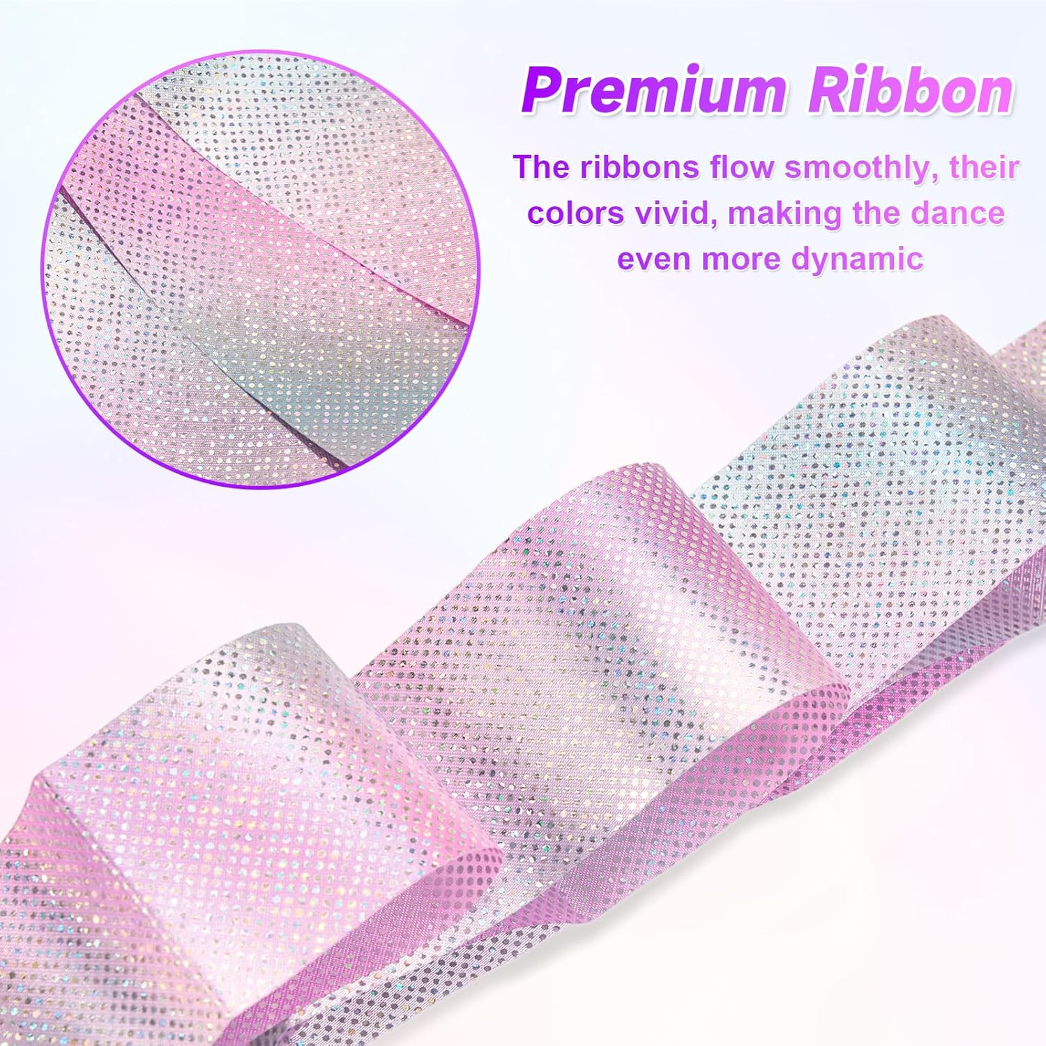 2 PCS Dance Ribbon Streamers 78.7 Inch, Sparkling Rhythmic Gymnastics Ribbon Dan