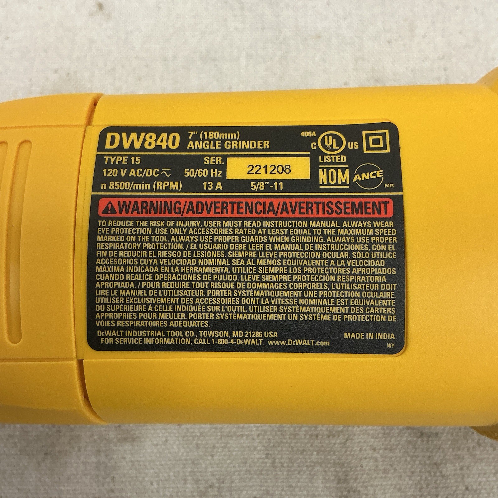 DEWALT DW840K Angle Grinder 13A 8000rpm 7 Wheel 120V