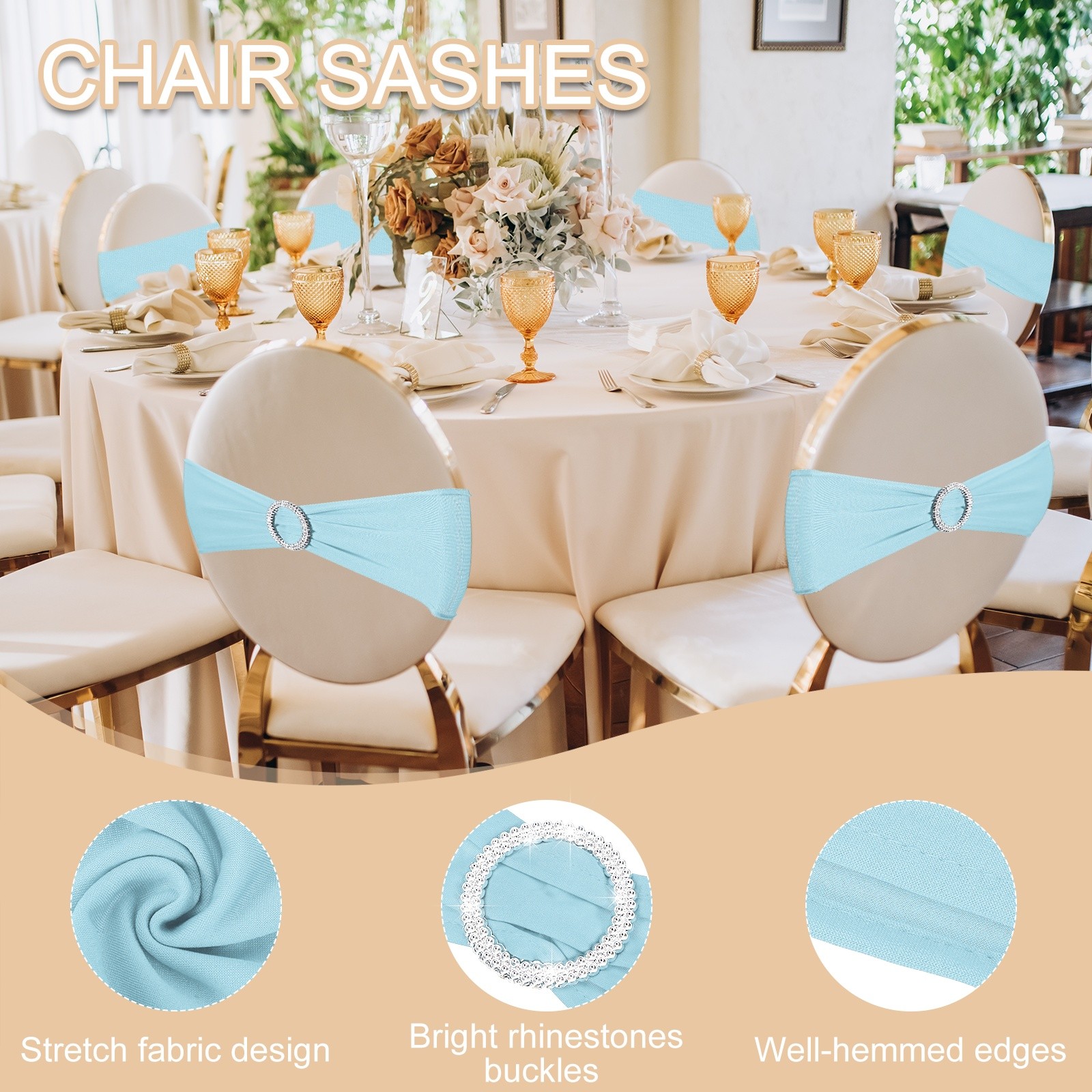как выглядит 10 Pack Chair Sashes, Stretch Chair Cover Band Bows Cover Band, Sky Blue фото