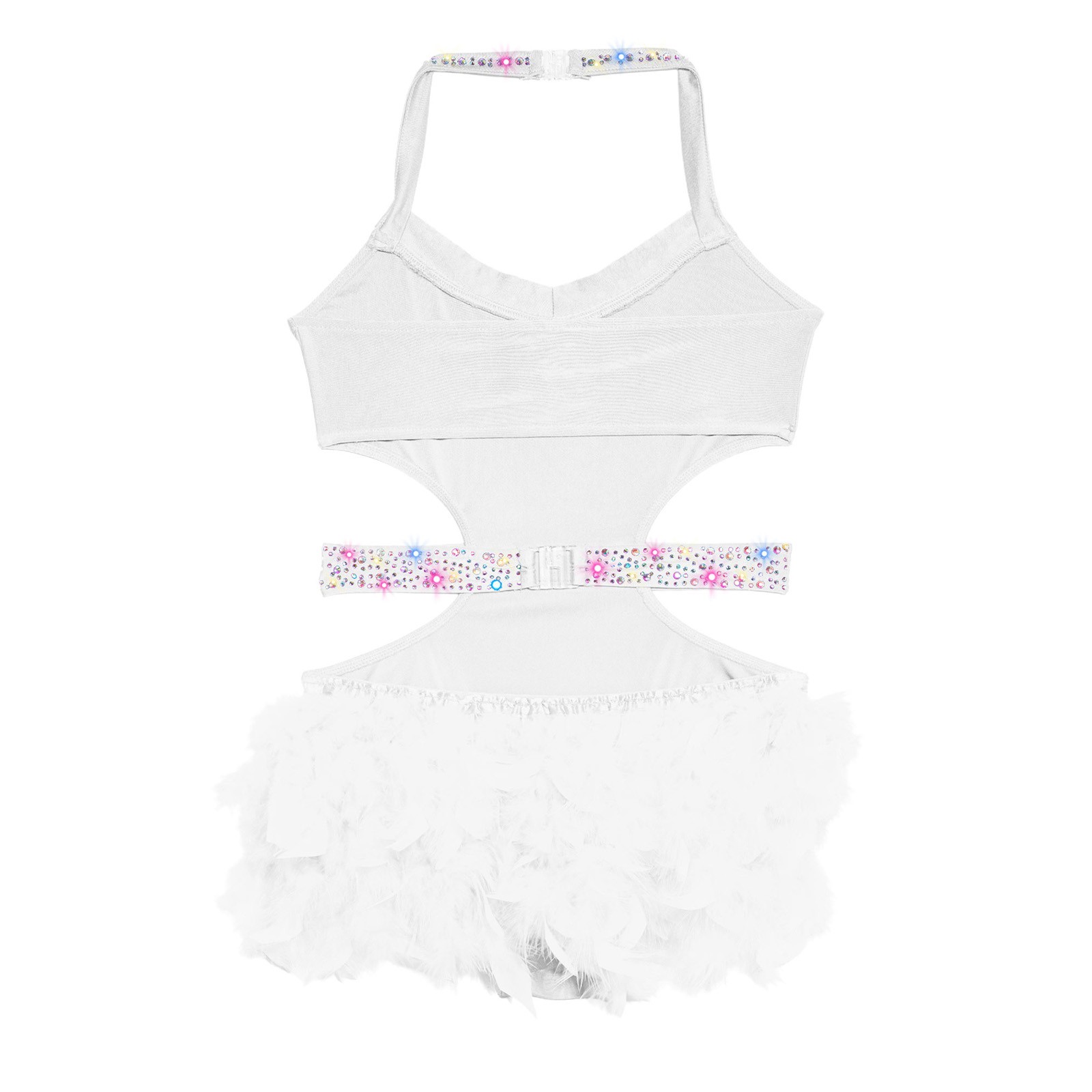 как выглядит Kids Girls Shiny Rhinestone Jazz Dance Feather Skirted Leotard Latin Dresses фото
