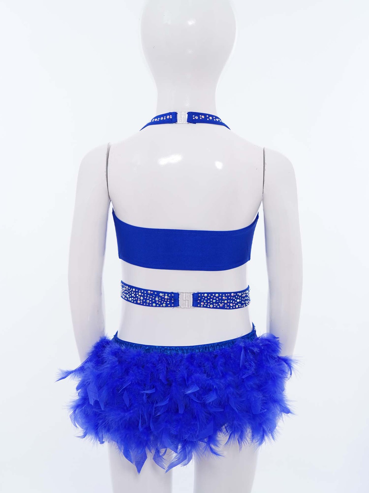 US Girls Feather Tutu Skirt Leotards Rhinestone Latin Dance Unitard Jazz Costume