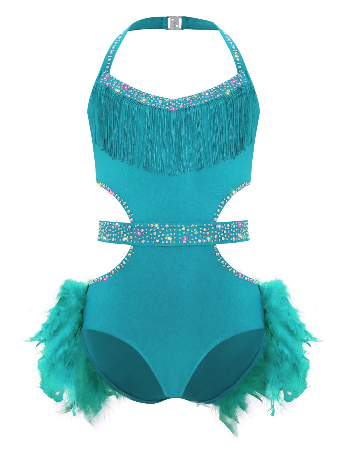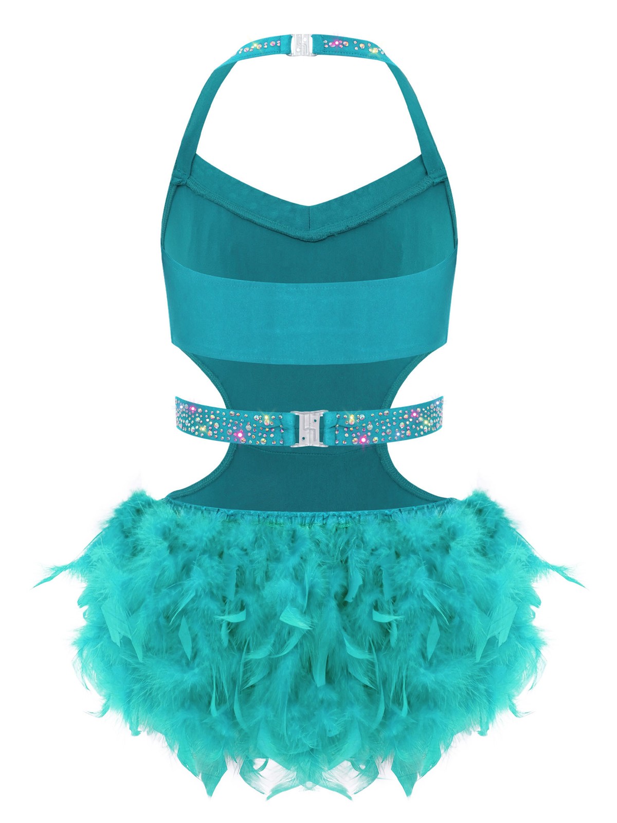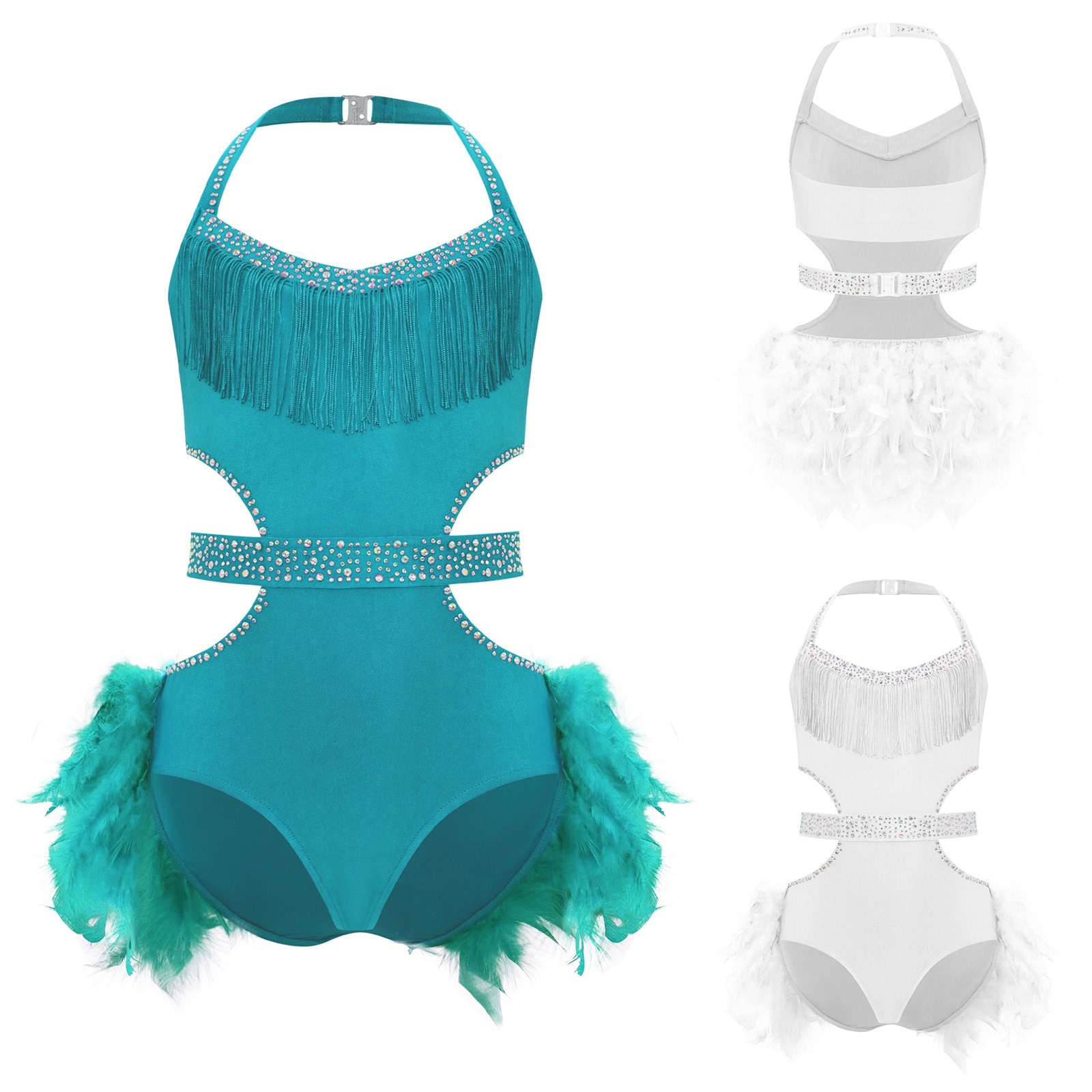 как выглядит US Girls Feather Tutu Skirt Leotards Rhinestone Latin Dance Unitard Jazz Costume фото
