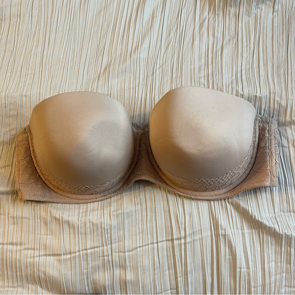 как выглядит Torrid strapless beige bra size 40DD фото