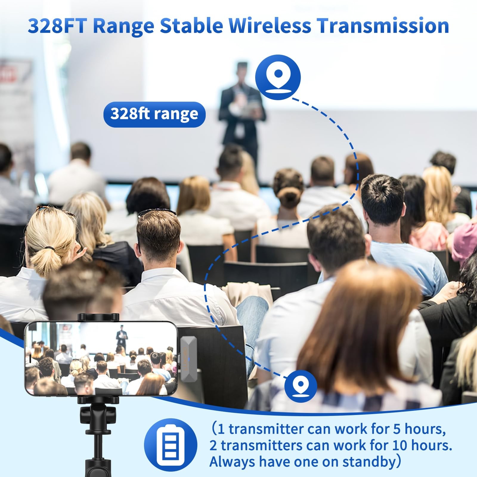 2 Pack Professional Wireless Lavalier Microphone with Charging Case 100m 328 ...