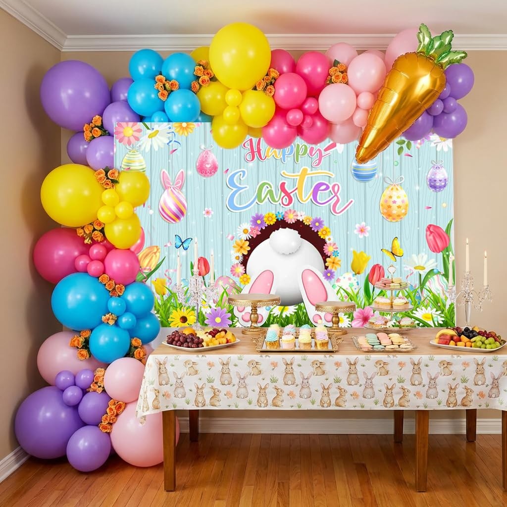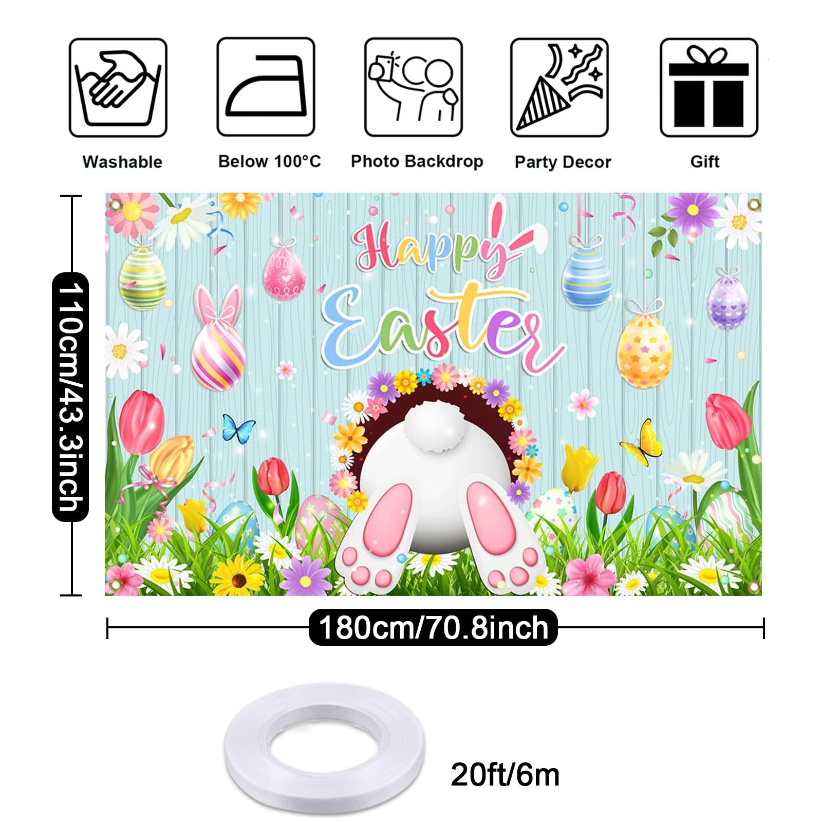 Happy Easter Banner Backdrop Blue Wooden Doors Easter Bunny Photo Backdrop Backg
