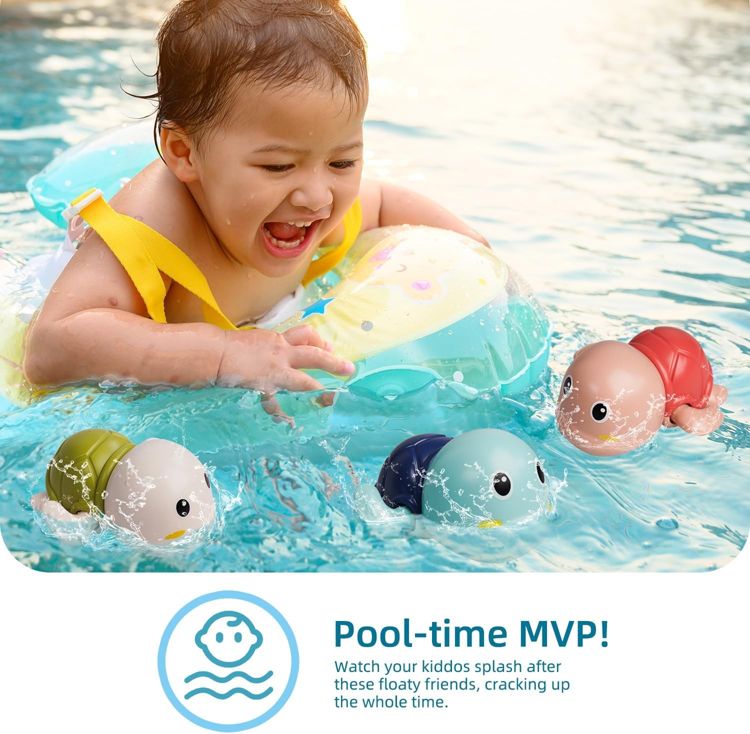 как выглядит Colorful Wind Up Swimming Turtles  3 Pack Bath Toys for Kids фото