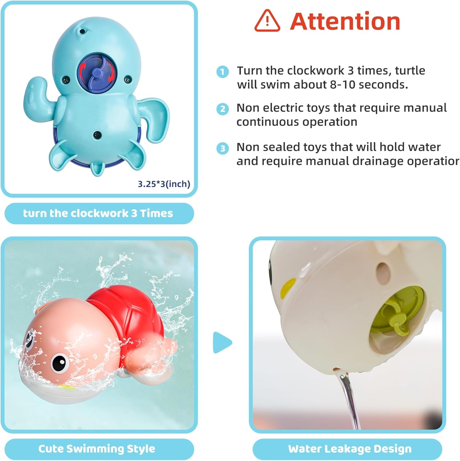 Colorful Wind Up Swimming Turtles 3 Pack Bath Toys for Kids
