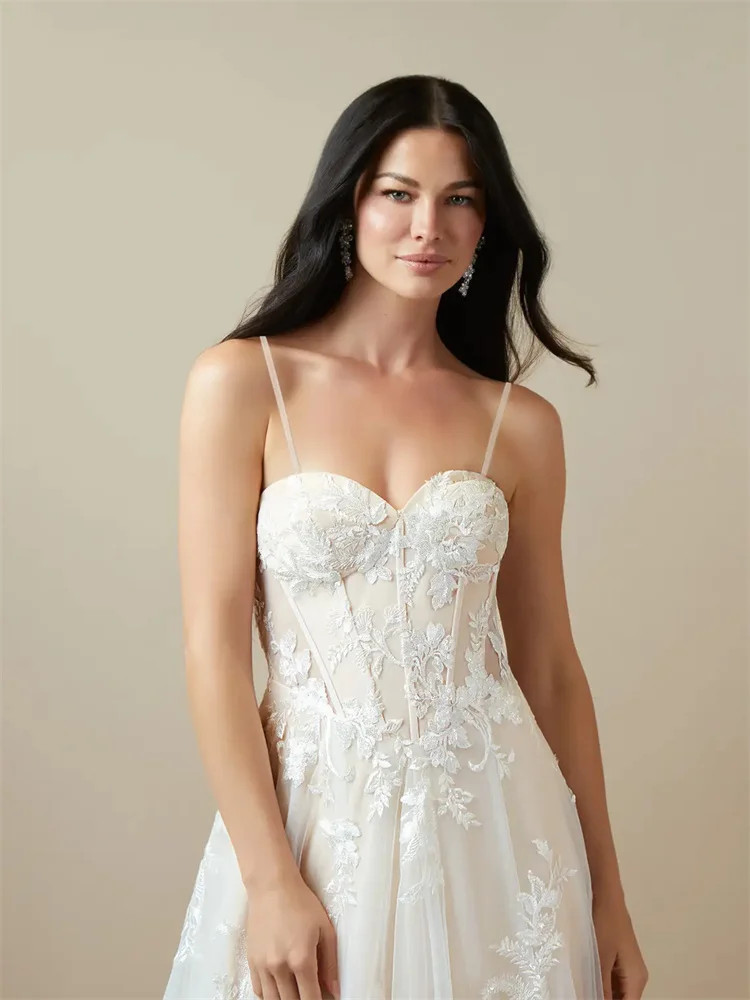 Elegant Tulle A-Line Wedding Dress Button Strapless Sweetheart Train Bridal Gown