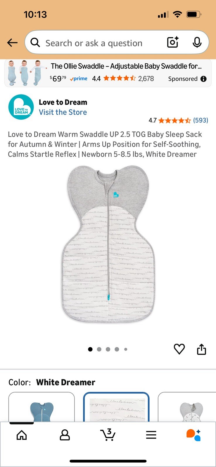 New Love to Dream Swaddle UP Self-Soothing Sleep Sack 8-13 lbs. 2.5 TOG Warm