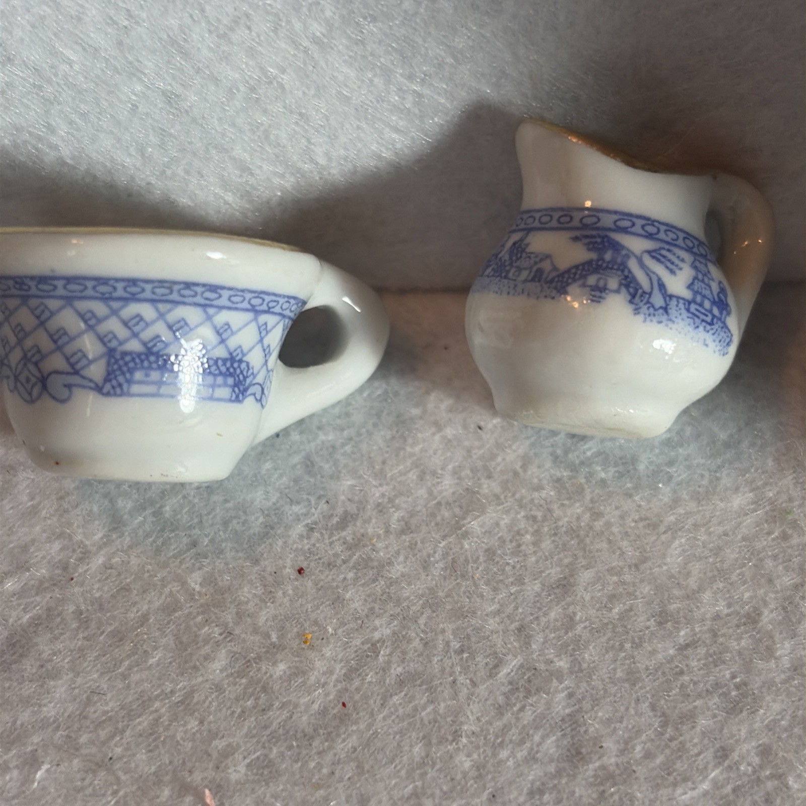 Blue Willow Miniature Porcelain Gold Rimmed Doll Tea Set 9 pcs.